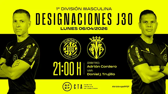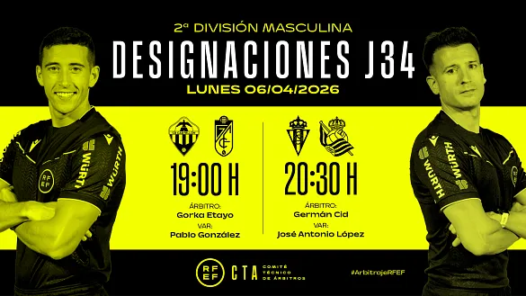 Actualidad Inicio Noticias Todas Categorías Institucional Expand Secondary Navigation Menu Presidencia Juntas directivas Igualdad Responsabilidad Social y Sostenibilidad Integridad Protección de la infancia Área médica Elecciones 2024 Federaciones Territoriales FIFA Patrocinadores rfef.es Museo Labor federativa Expand Secondary Navigation Menu Concursos Circulares Horarios Sanciones Mundial 2030 Competiciones masculinas Expand Secondary Navigation Menu Primera División Segunda División Primera Federación Segunda Federación Tercera Federación Copa del Rey Mapfre Supercopa Copa Federación Playoff de ascenso Competiciones UEFA Competiciones femeninas Expand Secondary Navigation Menu Primera División Femenina Primera Federación Iberdrola Segunda Federación FUTFEM Tercera Federación FUTFEM Copa de la Reina Iberdrola Supercopa Iberdrola Juveniles fútbol 11 Expand Secondary Navigation Menu División de Honor Juvenil Copa de Campeones Copa del Rey juvenil Youth League Selecciones autonómicas Expand Secondary Navigation Menu Copa de las Regiones de UEFA Femenino sub-16 Masculino sub-16 Femenino sub-14 Masculino sub-14 Femenino sub-12 Masculino sub-12 Fútbol sala Expand Secondary Navigation Menu Primera Masculina FS Primera FS Iberdrola Segunda Masculina FS Segunda Femenina FS Segunda B FS División de Honor Juvenil FS Copa de España Supercopa FS Supercopa Femenina FS Copa del Rey FS Copa de la Reina FS Copa de España Juvenil Campeonato de España Juvenil FS Futsal UEFA Champions League Selecciones autonómicas FS Otras competiciones Fútbol playa Expand Secondary Navigation Menu Primera División Playa Masc Segunda División Playa Masc Primera División Playa Fem Segunda División Playa Fem Copa Federación Playa Supercopa Playa Selecciones autonómicas Playa Campeonatos Clubes Base Playa Selecciones Playa adaptado Grassroots Expand Secondary Navigation Menu Playmakers Árbitros Expand Secondary Navigation Menu Designaciones VAR Expand Secondary Navigation Menu Audios VAR Entrenadores Expand Secondary Navigation Menu Premios Técnicos por el mundo Cursos Formación Expand Secondary Navigation Menu Formación online Formación presencial Selección Absoluta Selecciones Masculinas Expand Secondary Navigation Menu Sub-21 Sub-20 Sub-19 Sub-18 Sub-17 Sub-16 Sub-15 Sub-14 Selección Absoluta Femenina Selecciones Femeninas Expand Secondary Navigation Menu Sub-23 Sub-20 Femenina Sub-19 Femenina Sub-17 Femenina Sub-18 Femenina Sub-16 Femenina Sub-15 Femenina Sub-14 Femenina Selección Olímpica Expand Secondary Navigation Menu Selección Olímpica femenina Selección Olímpica masculina Selecciones fútbol sala masculinas Expand Secondary Navigation Menu Selección Absoluta fútbol sala Sub-23 fútbol sala Sub-21 fútbol sala Sub-18 fútbol sala Sub-19 fútbol sala Sub-17 fútbol sala Sub-16 fútbol sala Sub-15 fútbol sala Selecciones fútbol sala femeninas Expand Secondary Navigation Menu Selección Femenina fútbol sala Sub-23 Femenina fútbol sala Sub-21 Femenina fútbol sala Sub-19 Femenina fútbol sala Sub-18 Femenina fútbol sala Sub-17 Femenina fútbol sala Sub-15 Femenina fútbol sala Selecciones de fútbol playa Expand Secondary Navigation Menu Absoluta Masculina Playa Absoluta Femenina Playa Sub-21 Masculina Playa E-Sports Expand Secondary Navigation Menu e-Copa RFEF Leyendas Aplicar 57058 Resultados. Video en el interior Audios VAR, Segunda División Audios de las revisiones VAR de la 34ª jornada en Segunda División de la temporada 2025/26 Estos audios se publicarán durante cada jornada de Primera y Segunda División de la temporada 2025/2026 05 Abril 2026 Segunda Federación CLASIFICACIONES | Ya tenemos el primer ascenso El Real Unión Club, tras la jornada 30 de Segunda Federación, se corona campeón del Grupo 2 05 Abril 2026 Primera Federación, Segunda Federación ¡El Real Unión, campeón! Con su victoria ante el Náxara el Real Unión certifica su ascenso a Primera Federación Versus e-Learning tras gobernar el Grupo II de Segunda Federación con mano de hierro. 05 Abril 2026 Galería de imágenes en el interior Primera Federación Iberdrola Dos jornadas para cerrar los playoffs y la salvación El Deportivo Alavés ya es equipo de Primera División con una victoria que ha certificado el descenso de su rival esta jornada, el CE Europa 05 Abril 2026 Primera Masculina FS RESÚMENES | Última jornada antes del parón Todos los resúmenes y las mejores imágenes de la 24ª jornada, ¡A golpe de click! 05 Abril 2026 Primera FS Iberdrola RESÚMENES | Máxima igualdad en la Primera FS Iberdrola Segundo empate consecutivo del líder, el Melilla CD Torreblanca, que veía como en los últimos compases del encuentro le igualaba LBTL Futsal Alcantarilla (4-4). En la zona de playoffs, triunfo del... 05 Abril 2026 Primera FS Iberdrola Rebelión en la parte baja de la tabla Hasta cuatro empates marcaron el devenir de la 23ª jornada liguera en la Primera FS Iberdrola 05 Abril 2026 Sub-16 Femenina Nati Gutiérrez convoca a 24 jugadoras para los entrenamientos de abril La Selección Española sub-16 vuelve a los entrenamientos tras lograr el Torneo Desarrollo UEFA 05 Abril 2026 Designaciones, Segunda División, VAR Designaciones | Estos son los árbitros para los partidos del lunes 6 de abril en Segunda División DESIGNACIÓN ARBITRAL COMPLETA | SEGUNDA DIVISIÓN | TEMPORADA 2025-2026 | JORNADA 34 | LUNES 6 DE ABRIL 05 Abril 2026 Designaciones, Primera División, VAR Designaciones | Estos son los árbitros designados para el partido del lunes 6 de abril Primera División DESIGNACIÓN ARBITRAL COMPLETA DEL PARTIDO DEL LUNES 6 DE ABRIL EN PRIMERA DIVISIÓN 05 Abril 2026 Selección Absoluta fútbol sala Sergio González suple a Povill para los partidos ante Finlandia El seleccionador absoluto de fútbol sala, Jesús Velasco, ha anunciado un nuevo cambio en la convocatoria de cara a los amistosos frente a Finlandia de los días 10 y 11 de abril. Sergio González (... 05 Abril 2026 Ver 