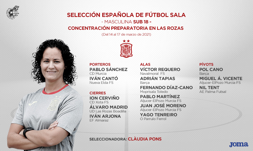 OFICIAL | Clàudia Pons da la lista de la Selección Sub-18 Masculina de Fútbol Sala para la concentración de marzo
