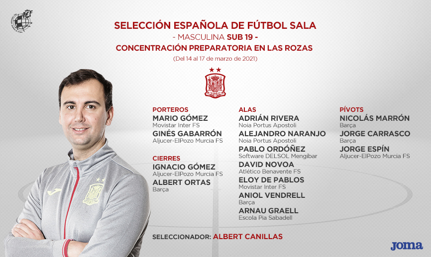 OFICIAL | Albert Canillas da la lista de la Selección Sub-19 de Fútbol Sala para la concentración de marzo