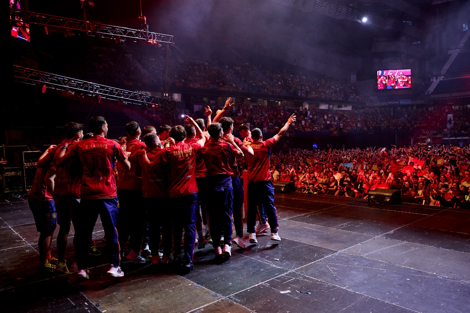 La Selección Española ha entrado en el WiZink Center con una afición enardecida tras revivir, a través de dos pantallas gigantes, el triunfo frente a Croacia y las primeras celebraciones del título....