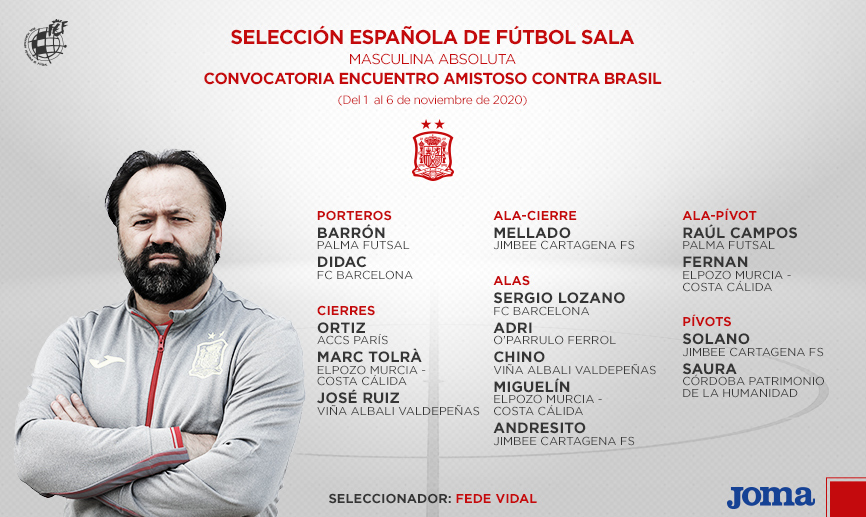OFICIAL| Cambio en la convocatoria de la Selección Española de Fútbol Sala para enfrentarse a Brasil