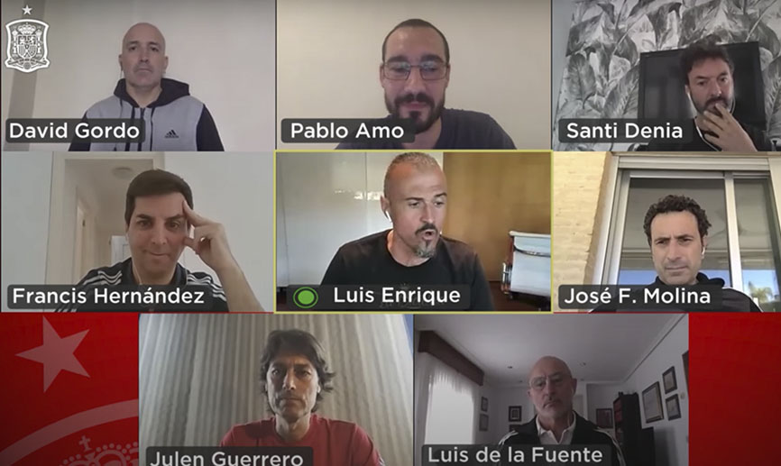 Los seleccionadores de la Real Federación Española de Fútbol, Luis Enrique, Luis de la Fuente (Sub-21), Santi Denia (Sub-19), Pablo Amo (Sub-18), David Gordo (Sub-17) y Julen Guerrero (Sub-15 y...