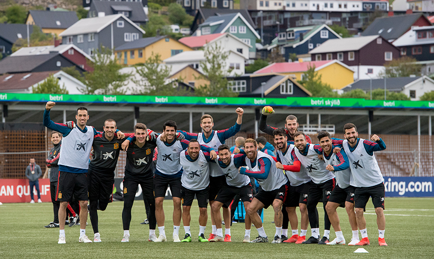 Contra el frío, fútbol. Contra la única hierba artificial de la isla, fútbol. Contra la fiesta local, fútbol. España no tiene otro planteamiento. Y tampoco lo iba a cambiar al abrigo de los vientos...