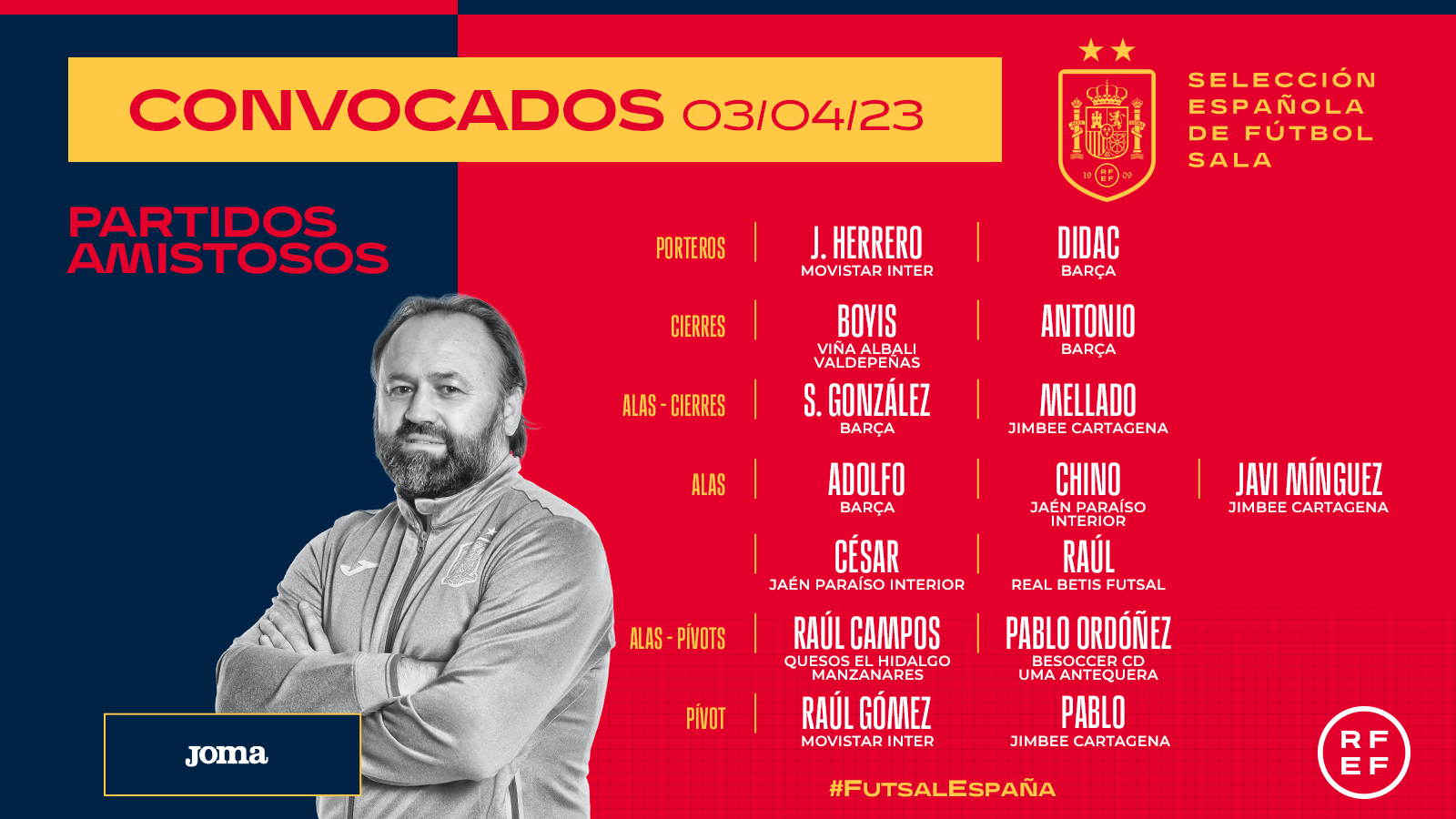 El seleccionador español, Fede Vidal, ha hecho oficial la convocatoria para los partidos amistosos que España disputará frente a Brasil los días 16 y 17 de abril en Zaragoza y Teruel. El...