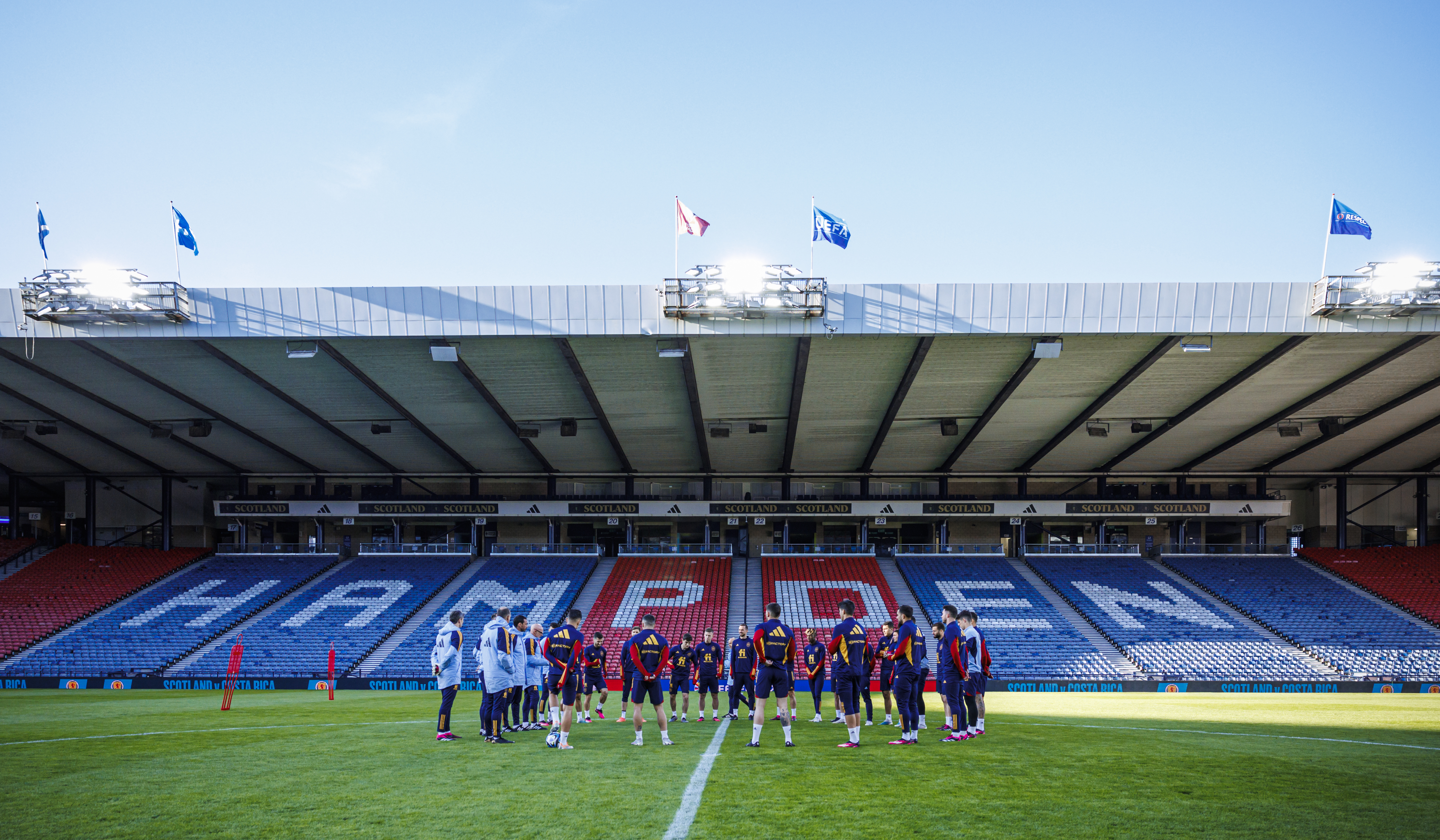 Luis Rubiales, en la antesala del duelo entre Escocia y España en Hampden Park, ha entregado, como es tradición, las insignias conmemorativas a los últimos internacionales en debutar con la Selección...