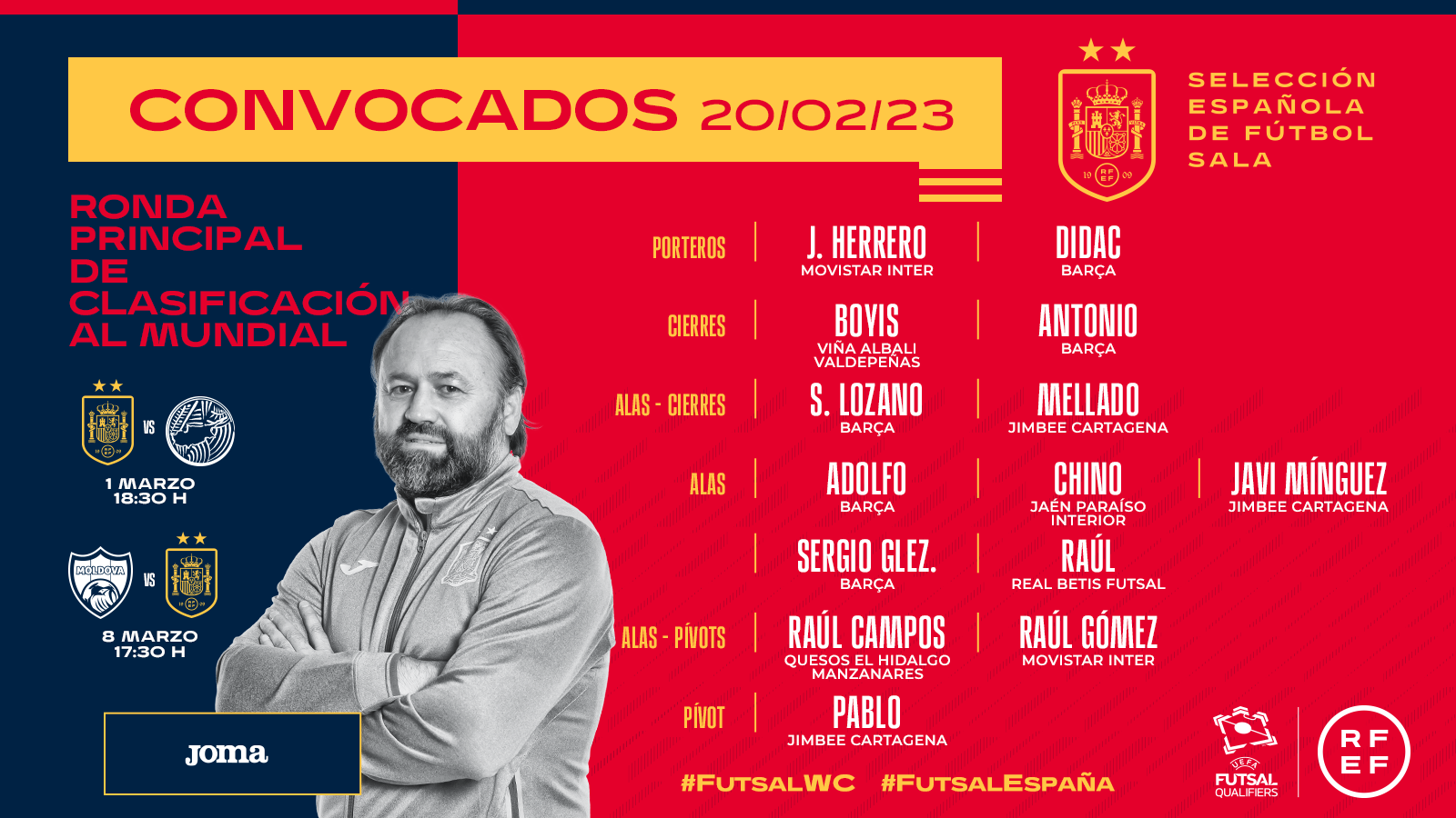 El seleccionador de fútbol sala, Fede Vidal, dio la convocatoria para los partidos frente a Chipre y Moldavia de la Ronda Principal de clasificación para el Mundial 2024. España jugará en Cáceres el...