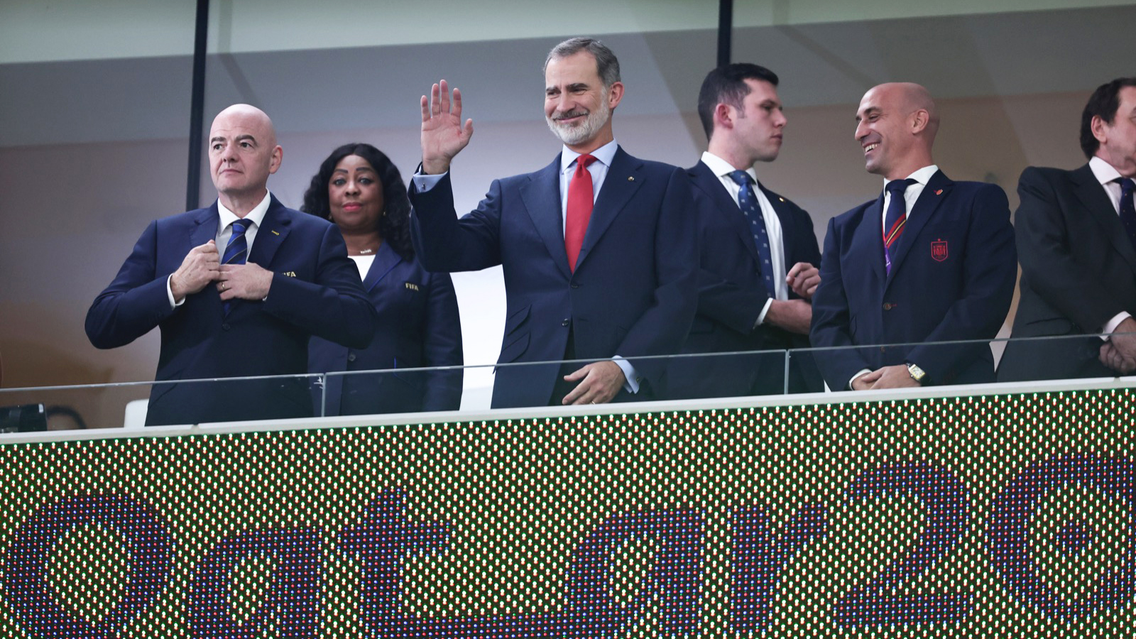 SM el Rey Felipe VI contempla en directo la victoria de la Selección en Catar