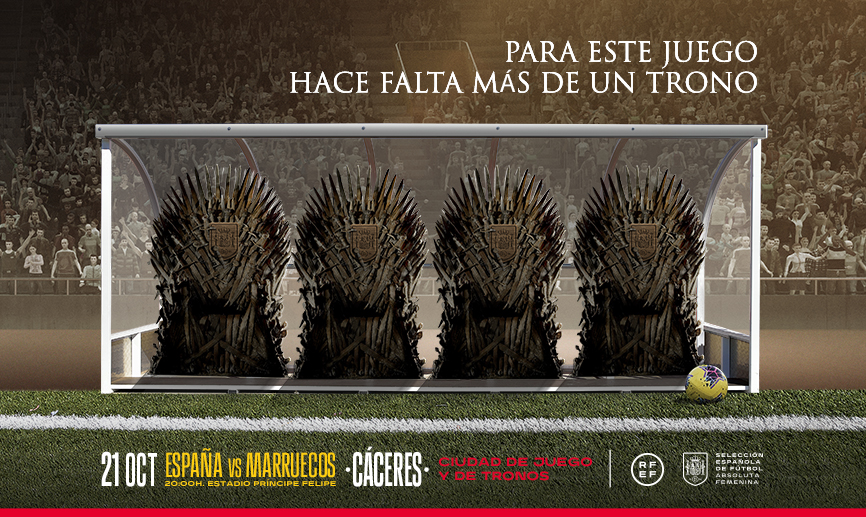 "Para este juego hace falta más de un trono" es el lema de la nueva campaña de la Real Federación española de Fútbol para promocionar el partido entre la Selección española Femenina y Marruecos. ...