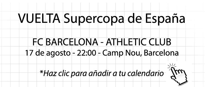Es muy sencillo. Con un sólo clic tendrás los partidos de ida y vuelta de la Supercopa de España, el comienzo de la liga y citas internacionales como el partido de la Supercopa de Europa en el calendario de tu smartphone. Además de sincronizar la fecha, recibirás todo la información acerca del evento: horarios, dónde se emitirá el encuentro etc.