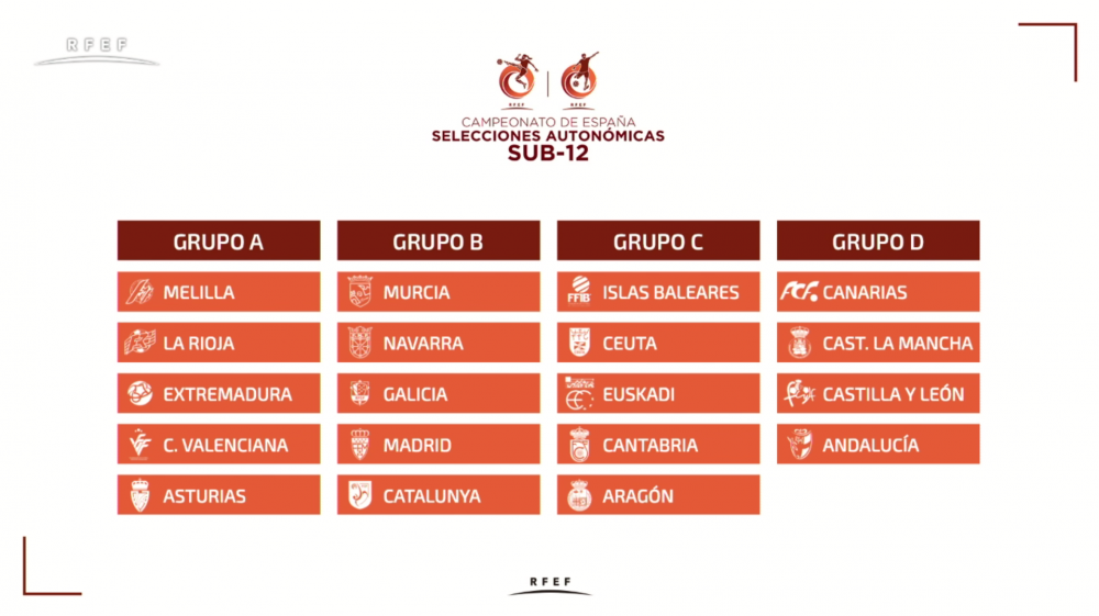 ACTUALIDAD | 15 Abril 2019 Así quedó el sorteo del Campeonato de España Sub-12 La cita será los días 1, 2 y 3 de mayo de 2019 en la localidad valenciana de Mislata Así quedan los grupos tras el sorteo efectuado en la jornada de este 15 de abril en Mislata: