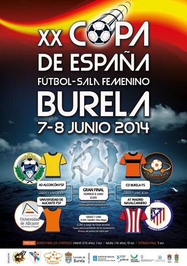 El Pabellón Municipal Vistalegre de Burela, en Galicia, acoge estos días 7 y 8 de junio de 2014 la final de la XX Copa de España de Fútbol Sala Femenino, que organizan el Comité Nacional de Fútbol Sala de la RFEF, la Federación Gallega de Fútbol y el Burela FS.