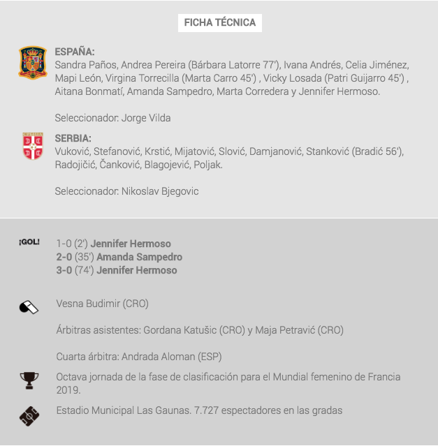 En este monólogo de España, ha llegado el tercer y definitivo gol. En una de las muestras de la verticalidad que atesora el conjunto de Jorge Vilda, de nuevo Amanda Sampedro ha filtrado un pase a la espalda de la defensa serbia al que ha llegado Jenni Hermoso para colocar el 3-0 definitivo en el marcador.