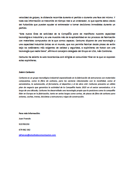 Las espinilleras inteligentes de Carbures también ayudarán al Seleccionador a la hora de tomar decisiones para partidos. La protección registrará datos relativos al rendimiento de los jugadores en el terreno de juego, por ejemplo, con qué pierna golpea el balón, la velocidad de golpeo, la distancia recorrida durante el partido o en una parte del mismo, ofreciendo datos claves al cuerpo técnico.
