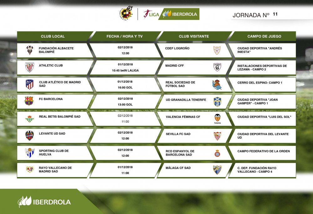 ACTUALIDAD | Competiciones masculinas 26 Noviembre 2018 Disponibles los horarios y retransmisiones de la jornada 11 de la Liga Iberdrola