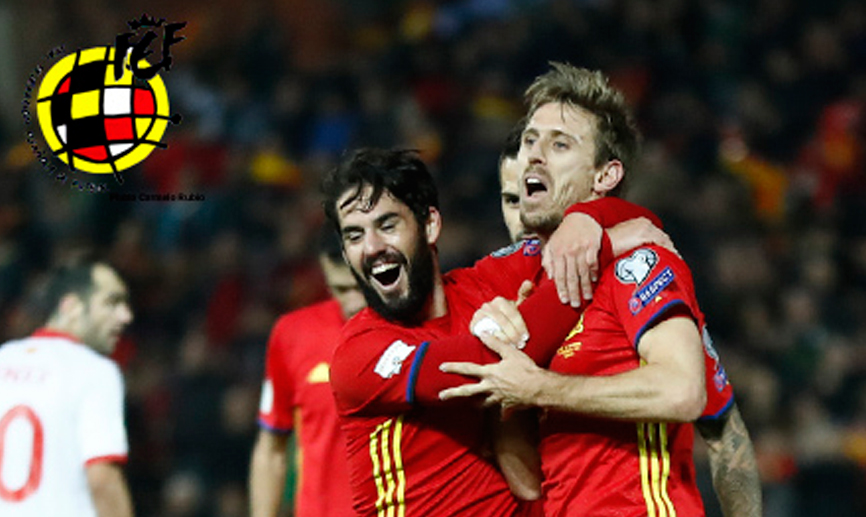 La Selección española sigue con paso firme en su camino hacia el Campeonato del Mundo de Rusia 2018. El combinado nacional se impuso Macedonia con solvencia por cuatro tantos a cero delante de los miles de aficionados que llenaron el Estadio Nuevo Los Cármenes de Granada con goles de Velkovski en propia puerta, Vitolo, Nacho Monreal y Aritz Aduriz.