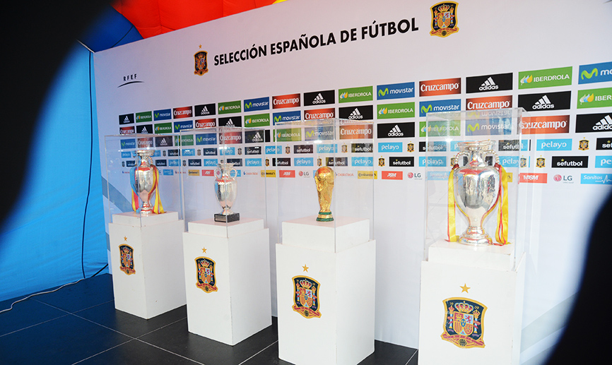 Aprovechando el partido amistoso que el conjunto de Vicente del Bosque jugará el 13 de noviembre ante Inglaterra en el estadio José Rico Pérez de Alicante, los aficionados podrán fotografiarse con los trofeos.