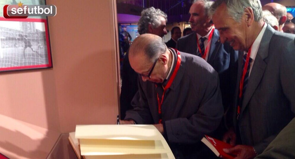 12:00 El presidente de la RFEF, Ángel María Villar, guía a los internacionales del 64 por el Museo de la Selección