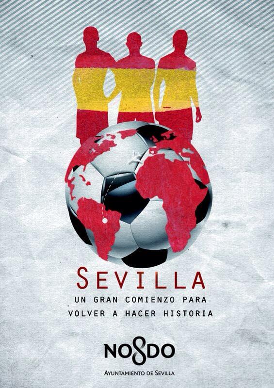 El ayuntamiento de Sevilla ha diseñado ya un cartel con el que celebra la presencia de la Selección con una llamativa frase: "Sevilla un gran comienzo para volver a hacer historia".