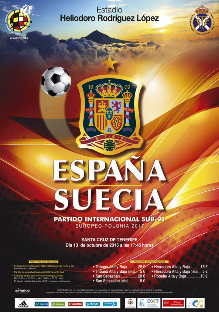 El martes 13 de octubre a partir de las 17:45 (hora canaria) españoles y suecos se verán las caras sobre el césped del estadio Heliodoro Rodríguez López de Tenerife.