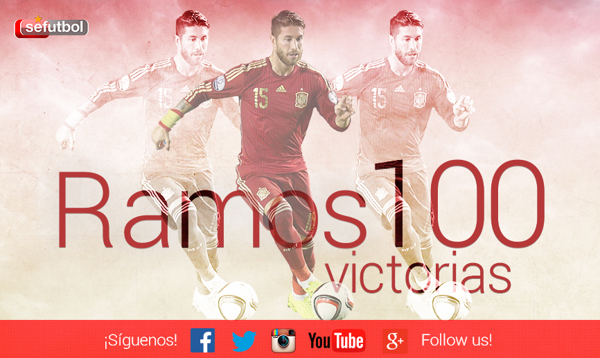 El internacional sevillano llega a una cifra mágica de victorias con la Selección española, las 100, en su amplia trayectoria con el equipo nacional, con el que ha conquistado las dos últimas Eurocopas y la Copa Mundial de la FIFA de 2010. Ramos es uno de los baluartes de presente y futuro de España.