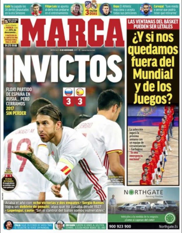 La prensa nacional refleja el gran año que ha realizado el conjunto de Julen Lopetegui no sólo consiguiendo la clasificación directa para disputar el Mundial de Rusia 2018 sino también sin conocer la derrota en todo el año 2017.