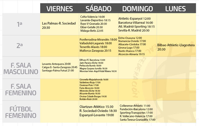 Este viernes ya hay partidos tanto en Primera División (Las Palmas-Real Sociedad juegan a las 19:30 hora insular) como en la Liga Nacional de Fútbol Sala.