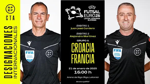 Actualidad Inicio Noticias Todas Categorías Institucional Expand Secondary Navigation Menu Presidencia Juntas directivas Igualdad Responsabilidad Social y Sostenibilidad Integridad Protección de la infancia Área médica Elecciones 2024 Federaciones Territoriales FIFA Patrocinadores rfef.es Museo Labor federativa Expand Secondary Navigation Menu Concursos Circulares Horarios Sanciones Mundial 2030 Competiciones masculinas Expand Secondary Navigation Menu Primera División Segunda División Primera Federación Segunda Federación Tercera Federación Copa del Rey Mapfre Supercopa Copa Federación Playoff de ascenso Competiciones UEFA Competiciones femeninas Expand Secondary Navigation Menu Primera División Femenina Primera Federación Iberdrola Segunda Federación FUTFEM Tercera Federación FUTFEM Copa de la Reina Iberdrola Supercopa Iberdrola Juveniles fútbol 11 Expand Secondary Navigation Menu División de Honor Juvenil Copa de Campeones Copa del Rey juvenil Youth League Selecciones autonómicas Expand Secondary Navigation Menu Copa de las Regiones de UEFA Femenino sub-16 Masculino sub-16 Femenino sub-14 Masculino sub-14 Femenino sub-12 Masculino sub-12 Fútbol sala Expand Secondary Navigation Menu Primera Masculina FS Primera FS Iberdrola Segunda Masculina FS Segunda Femenina FS Segunda B FS División de Honor Juvenil FS Copa de España Supercopa FS Supercopa Femenina FS Copa del Rey FS Copa de la Reina FS Copa de España Juvenil Campeonato de España Juvenil FS Futsal UEFA Champions League Selecciones autonómicas FS Otras competiciones Fútbol playa Expand Secondary Navigation Menu Primera División Playa Masc Segunda División Playa Masc Primera División Playa Fem Segunda División Playa Fem Copa Federación Playa Supercopa Playa Selecciones autonómicas Playa Campeonatos Clubes Base Playa Selecciones Playa adaptado Grassroots Expand Secondary Navigation Menu Playmakers Árbitros Expand Secondary Navigation Menu Designaciones VAR Expand Secondary Navigation Menu Audios VAR Entrenadores Expand Secondary Navigation Menu Premios Técnicos por el mundo Cursos Formación Expand Secondary Navigation Menu Formación online Formación presencial Selección Absoluta Selecciones Masculinas Expand Secondary Navigation Menu Sub-21 Sub-20 Sub-19 Sub-18 Sub-17 Sub-16 Sub-15 Sub-14 Selección Absoluta Femenina Selecciones Femeninas Expand Secondary Navigation Menu Sub-23 Sub-20 Femenina Sub-19 Femenina Sub-17 Femenina Sub-18 Femenina Sub-16 Femenina Sub-15 Femenina Sub-14 Femenina Selección Olímpica Expand Secondary Navigation Menu Selección Olímpica femenina Selección Olímpica masculina Selecciones fútbol sala masculinas Expand Secondary Navigation Menu Selección Absoluta fútbol sala Sub-23 fútbol sala Sub-21 fútbol sala Sub-18 fútbol sala Sub-19 fútbol sala Sub-17 fútbol sala Sub-16 fútbol sala Sub-15 fútbol sala Selecciones fútbol sala femeninas Expand Secondary Navigation Menu Selección Femenina fútbol sala Sub-23 Femenina fútbol sala Sub-21 Femenina fútbol sala Sub-19 Femenina fútbol sala Sub-18 Femenina fútbol sala Sub-17 Femenina fútbol sala Sub-15 Femenina fútbol sala Selecciones de fútbol playa Expand Secondary Navigation Menu Absoluta Masculina Playa Absoluta Femenina Playa Sub-21 Masculina Playa E-Sports Expand Secondary Navigation Menu e-Copa RFEF Leyendas Aplicar 57052 Resultados. Supercopa Iberdrola Antonio Rodríguez: "El partido ha sido espectacular" El segundo entrenador del Real Madrid sustituía a Pau Quesada esta tarde en el banquillo blanco 20 Enero 2026 Supercopa Iberdrola Víctor Martín: "Una pena no haber podido hacer algún gol más" El técnico rojiblanco comparecía en la sala de prensa de Castalia tras la derrota de su equipo 20 Enero 2026 Video en el interior Galería de imágenes en el interior Supercopa Iberdrola El Real Madrid se lleva el derbi y el primer billete a la final (3-1) Athenea del Castillo, Caroline Weir y Linda Caicedo firman los goles que aseguran la presencia blanca en la final del sábado 20 Enero 2026 Video en el interior Galería de imágenes en el interior Sub-17 España impone su sello ante Italia Con goles de Christian Imga y Jorge Domínguez, el equipo de Sergio García, muy serio, se lleva el primer duelo ante los italianos en Las Rozas (2-0) 20 Enero 2026 Video en el interior Primera Federación #ElFútbolDePrimera, programa 20 · temporada 4 Invitados: Imanol de la Sota (Barakaldo CF) y Carlos Nieto (SD Tarazona) 20 Enero 2026 Galería de imágenes en el interior Designaciones Juan José Cordero y Alejandro Martínez dirigirán el encuentro inaugural del Europeo Ambos colegiados dirigirán el Croacia - Francia del Grupo A 20 Enero 2026 Video en el interior Árbitros, Primera División, Segunda División, Primera División Femenina Tiempo de Revisión - Temporada 2025/26 - Programa 17 (20/01/2026) El CTA analiza en esta decimoquinta entrega un total de cuatro jugadas de Primera y dos de Segunda División masculinas, y dos de Primera División femenina seleccionadas previamente por el Comité de Asesores 20 Enero 2026 Galería de imágenes en el interior Supercopa Iberdrola El FC Barcelona ultima el asalto a su quinta Supercopa consecutiva El equipo blaugrana protagoniza, junto al Athletic Club, la segunda semifinal de la Supercopa de España Iberdrola (mañana a las 19h) 20 Enero 2026 Responsabilidad Social y Sostenibilidad La RFEF celebra la jornada 'Deporte es Vida' Tendrán lugar el miércoles 28 de enero (10:00-13:00 horas) en el Salón Luis Aragonés de la Ciudad del Fútbol de Las Rozas 20 Enero 2026 Copa de la Reina Iberdrola La isla de Gran Canaria será la sede de la gran final de la Copa de SM la Reina Iberdrola 2026 El Estadio de Gran Canaria, en Las Palmas de Gran Canaria, albergará el partido en el que se jugarán el título el próximo 16 de mayo 20 Enero 2026 Selección Absoluta fútbol sala Novoa sustituye a Dani Zurdo para el Europeo Jesús Velasco ha anunciado un cambio en la convocatoria para
