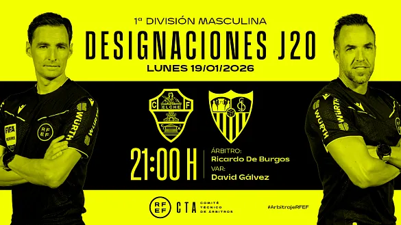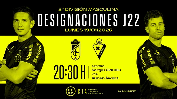 Actualidad Inicio Noticias Todas Categorías Institucional Expand Secondary Navigation Menu Presidencia Juntas directivas Igualdad Responsabilidad Social y Sostenibilidad Integridad Protección de la infancia Área médica Elecciones 2024 Federaciones Territoriales FIFA Patrocinadores rfef.es Museo Labor federativa Expand Secondary Navigation Menu Concursos Circulares Horarios Sanciones Mundial 2030 Competiciones masculinas Expand Secondary Navigation Menu Primera División Segunda División Primera Federación Segunda Federación Tercera Federación Copa del Rey Mapfre Supercopa Copa Federación Playoff de ascenso Competiciones UEFA Competiciones femeninas Expand Secondary Navigation Menu Primera División Femenina Primera Federación Iberdrola Segunda Federación FUTFEM Tercera Federación FUTFEM Copa de la Reina Iberdrola Supercopa Iberdrola Juveniles fútbol 11 Expand Secondary Navigation Menu División de Honor Juvenil Copa de Campeones Copa del Rey juvenil Youth League Selecciones autonómicas Expand Secondary Navigation Menu Copa de las Regiones de UEFA Femenino sub-16 Masculino sub-16 Femenino sub-14 Masculino sub-14 Femenino sub-12 Masculino sub-12 Fútbol sala Expand Secondary Navigation Menu Primera Masculina FS Primera FS Iberdrola Segunda Masculina FS Segunda Femenina FS Segunda B FS División de Honor Juvenil FS Copa de España Supercopa FS Supercopa Femenina FS Copa del Rey FS Copa de la Reina FS Copa de España Juvenil Campeonato de España Juvenil FS Futsal UEFA Champions League Selecciones autonómicas FS Otras competiciones Fútbol playa Expand Secondary Navigation Menu Primera División Playa Masc Segunda División Playa Masc Primera División Playa Fem Segunda División Playa Fem Copa Federación Playa Supercopa Playa Selecciones autonómicas Playa Campeonatos Clubes Base Playa Selecciones Playa adaptado Grassroots Expand Secondary Navigation Menu Playmakers Árbitros Expand Secondary Navigation Menu Designaciones VAR Expand Secondary Navigation Menu Audios VAR Entrenadores Expand Secondary Navigation Menu Premios Técnicos por el mundo Cursos Formación Expand Secondary Navigation Menu Formación online Formación presencial Selección Absoluta Selecciones Masculinas Expand Secondary Navigation Menu Sub-21 Sub-20 Sub-19 Sub-18 Sub-17 Sub-16 Sub-15 Sub-14 Selección Absoluta Femenina Selecciones Femeninas Expand Secondary Navigation Menu Sub-23 Sub-20 Femenina Sub-19 Femenina Sub-17 Femenina Sub-18 Femenina Sub-16 Femenina Sub-15 Femenina Sub-14 Femenina Selección Olímpica Expand Secondary Navigation Menu Selección Olímpica femenina Selección Olímpica masculina Selecciones fútbol sala masculinas Expand Secondary Navigation Menu Selección Absoluta fútbol sala Sub-23 fútbol sala Sub-21 fútbol sala Sub-18 fútbol sala Sub-19 fútbol sala Sub-17 fútbol sala Sub-16 fútbol sala Sub-15 fútbol sala Selecciones fútbol sala femeninas Expand Secondary Navigation Menu Selección Femenina fútbol sala Sub-23 Femenina fútbol sala Sub-21 Femenina fútbol sala Sub-19 Femenina fútbol sala Sub-18 Femenina fútbol sala Sub-17 Femenina fútbol sala Sub-15 Femenina fútbol sala Selecciones de fútbol playa Expand Secondary Navigation Menu Absoluta Masculina Playa Absoluta Femenina Playa Sub-21 Masculina Playa E-Sports Expand Secondary Navigation Menu e-Copa RFEF Leyendas Aplicar 57056 Resultados. Segunda Femenina FS La segunda vuelta comienza sin tregua en los tres grupos Los líderes consolidan su dominio mientras la pelea por los playoffs y la salvación se recrudece 19 Enero 2026 Video en el interior Audios VAR, Segunda División Audios de las revisiones VAR de la 22ª jornada en Segunda División de la temporada 2025/26 Estos audios se publicarán durante cada jornada de Primera y Segunda División de la temporada 2025/2026 18 Enero 2026 Video en el interior Primera Federación RESÚMENES | Comienza la segunda parte Disfruta de los mejores momentos de la jornada 20 18 Enero 2026 Segunda Federación CLASIFICACIONES | Sin prisa pero sin pausa El decimonoveno fin de semana de Segunda Federación nos regala auténticos partidazos 18 Enero 2026 Segunda Federación FUTFEM Los líderes no fallan en Segunda Federación Athletic Club, Zaragoza CFF y Sportextremadura, primeros en las tablas de cada grupo, cierran la jornada 15 con victorias 18 Enero 2026 Galería de imágenes en el interior Primera Federación Iberdrola El trono sigue siendo del Deportivo Alavés Las vascas han ganado 0-1 en Albacete y se garantizan una semana más el primer puesto de la tabla 18 Enero 2026 Copa del Rey Mapfre Suerte por repartir para el penúltimo escalón hacia La Cartuja de Sevilla Este lunes 19 de enero (13:00h en directo por Teledeporte, Movistar Plus+ y rfef.es) se celebra el sorteo de los cuartos de final de la Copa del Rey Mapfre 18 Enero 2026 Selecciones autonómicas FS ¡Toda la información de la previa del Campeonato de España Sub-16 masculino de Selecciones Autonómicas! Del 14 al 18 de enero se juega la fase previa del Campeonato de España sub-16 masculino 18 Enero 2026 Designaciones, VAR, Primera División Designaciones | Estos son los árbitros para el partido del lunes 19 de enero de la jornada 20 en Primera División DESIGNACIÓN ARBITRAL COMPLETA DEL PARTIDO DEL LUNES 19 DE ENERO EN PRIMERA DIVISIÓN 18 Enero 2026 Designaciones, VAR, Segunda División Designaciones | Estos son los árbitros para el partido del lunes 19 de enero de la jornada 22 en Segunda División DESIGNACIÓN ARBITRAL COMPLETA DEL PARTIDO DEL LUNES 19 DE ENERO EN SEGUNDA DIVISIÓN 18 Enero 2026 Selecciones autonómicas FS ¡Sigue la previa del Campeonato de España sub-14 masculino de Selecciones Autonómicas! Del 14 al 18 de enero se disputa la fase previa del Campeonato de España Sub-14 masculino 18 Enero 2026 Ver más Ver más