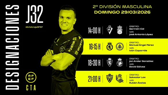 Actualidad Inicio Noticias Todas Categorías Institucional Expand Secondary Navigation Menu Presidencia Juntas directivas Igualdad Responsabilidad Social y Sostenibilidad Integridad Protección de la infancia Área médica Elecciones 2024 Federaciones Territoriales FIFA Patrocinadores rfef.es Museo Labor federativa Expand Secondary Navigation Menu Concursos Circulares Horarios Sanciones Mundial 2030 Competiciones masculinas Expand Secondary Navigation Menu Primera División Segunda División Primera Federación Segunda Federación Tercera Federación Copa del Rey Mapfre Supercopa Copa Federación Playoff de ascenso Competiciones UEFA Competiciones femeninas Expand Secondary Navigation Menu Primera División Femenina Primera Federación Iberdrola Segunda Federación FUTFEM Tercera Federación FUTFEM Copa de la Reina Iberdrola Supercopa Iberdrola Juveniles fútbol 11 Expand Secondary Navigation Menu División de Honor Juvenil Copa de Campeones Copa del Rey juvenil Youth League Selecciones autonómicas Expand Secondary Navigation Menu Copa de las Regiones de UEFA Femenino sub-16 Masculino sub-16 Femenino sub-14 Masculino sub-14 Femenino sub-12 Masculino sub-12 Fútbol sala Expand Secondary Navigation Menu Primera Masculina FS Primera FS Iberdrola Segunda Masculina FS Segunda Femenina FS Segunda B FS División de Honor Juvenil FS Copa de España Supercopa FS Supercopa Femenina FS Copa del Rey FS Copa de la Reina FS Copa de España Juvenil Campeonato de España Juvenil FS Futsal UEFA Champions League Selecciones autonómicas FS Otras competiciones Fútbol playa Expand Secondary Navigation Menu Primera División Playa Masc Segunda División Playa Masc Primera División Playa Fem Segunda División Playa Fem Copa Federación Playa Supercopa Playa Selecciones autonómicas Playa Campeonatos Clubes Base Playa Selecciones Playa adaptado Grassroots Expand Secondary Navigation Menu Playmakers Árbitros Expand Secondary Navigation Menu Designaciones VAR Expand Secondary Navigation Menu Audios VAR Entrenadores Expand Secondary Navigation Menu Premios Técnicos por el mundo Cursos Formación Expand Secondary Navigation Menu Formación online Formación presencial Selección Absoluta Selecciones Masculinas Expand Secondary Navigation Menu Sub-21 Sub-20 Sub-19 Sub-18 Sub-17 Sub-16 Sub-15 Sub-14 Selección Absoluta Femenina Selecciones Femeninas Expand Secondary Navigation Menu Sub-23 Sub-20 Femenina Sub-19 Femenina Sub-17 Femenina Sub-18 Femenina Sub-16 Femenina Sub-15 Femenina Sub-14 Femenina Selección Olímpica Expand Secondary Navigation Menu Selección Olímpica femenina Selección Olímpica masculina Selecciones fútbol sala masculinas Expand Secondary Navigation Menu Selección Absoluta fútbol sala Sub-23 fútbol sala Sub-21 fútbol sala Sub-18 fútbol sala Sub-19 fútbol sala Sub-17 fútbol sala Sub-16 fútbol sala Sub-15 fútbol sala Selecciones fútbol sala femeninas Expand Secondary Navigation Menu Selección Femenina fútbol sala Sub-23 Femenina fútbol sala Sub-21 Femenina fútbol sala Sub-19 Femenina fútbol sala Sub-18 Femenina fútbol sala Sub-17 Femenina fútbol sala Sub-15 Femenina fútbol sala Selecciones de fútbol playa Expand Secondary Navigation Menu Absoluta Masculina Playa Absoluta Femenina Playa Sub-21 Masculina Playa E-Sports Expand Secondary Navigation Menu e-Copa RFEF Leyendas Aplicar 57076 Resultados. Primera FS Iberdrola Jornada de sorpresas en la Primera FS Iberdrola El miércoles 1 de abril se cierra la jornada con el duelo entre STV Roldán y Atlético Navalcarnero 29 Marzo 2026 Video en el interior Selección Absoluta Víctor Muñoz firma un debut soñado con España: golazo y ovación ante Serbia en La Cerámica El delantero de Osasuna marcó el 3-0 en su estreno con la Selección y destacó el apoyo del vestuario y el orgullo de compartir el momento con su familia 28 Marzo 2026 Primera FS Iberdrola El Atlético Navalcarnero a la final de la IX European Womens Champions Futsal Tournament Se jugará el título ante el anfitrión, el GCR Nun’Alvares portugués a las 19:30 horas del domingo 28 Marzo 2026 Segunda Masculina FS El Wanapix rompe su racha triunfal ante el Sala 5 Martorell El líder de la Segunda División cae derrotado en casa ante el conjunto catalán y ve interrumpida una trayectoria que incluía seis victorias consecutivas en la categoría de plata 28 Marzo 2026 Video en el interior Galería de imágenes en el interior Sub-19 Nuevo póker para jugarse el 'all-in' (4-0) España repite resultado contra Finlandia y el pulso contra Países Bajos será decisivo en la clasificación al Campeonato de Europa 28 Marzo 2026 Primera Federación, Horarios Horarios y televisiones de la jornada 33 de Primera Federación Versus e-Learning Consulta los horarios y televisiones de la trigésimo tercera jornada que se disputará entre el martes 14, el viernes 17, el sábado 18 y el domingo 19 de abril 28 Marzo 2026 Galería de imágenes en el interior Selección Absoluta La Selección ya piensa en Barcelona Tras su victoria ante Serbia, el equipo de Luis de la Fuente prepara ya en el partido del martes contra Egipto 28 Marzo 2026 Video en el interior Sub-18 Golpe sobre la mesa de la Ronda 1 España se impuso a Inglaterra (1-3) en la segunda jornada gracias a los goles de Castillo, Miguel Cubo y Alexis Ciria y selló así su clasificación 28 Marzo 2026 Galería de imágenes en el interior Sub-21 Vuelta al trabajo en Las Rozas La Selección, después de la goleada en Lárnaca ante Chipre, ya piensa en el partido del martes en Alcalá de Henares ante la Federación de Kosovo 28 Marzo 2026 Primera FS Iberdrola Se comprime la parte baja de la tabla clasificatoria y tropiezo del líder El triunfo de Penya Esplugues sobre Les Corts (2-3) mete de lleno a muchos equipos en la lucha por preservar la categoría 28 Marzo 2026 Designaciones, Segunda División, VAR Designaciones | Estos son los árbitros para los partidos del domingo 29 de marzo en Segunda División DESIGNACIÓN ARBITRAL