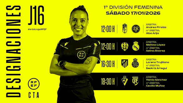 Actualidad Inicio Noticias Todas Categorías Institucional Expand Secondary Navigation Menu Presidencia Juntas directivas Igualdad Responsabilidad Social y Sostenibilidad Integridad Protección de la infancia Área médica Elecciones 2024 Federaciones Territoriales FIFA Patrocinadores rfef.es Museo Labor federativa Expand Secondary Navigation Menu Concursos Circulares Horarios Sanciones Mundial 2030 Competiciones masculinas Expand Secondary Navigation Menu Primera División Segunda División Primera Federación Segunda Federación Tercera Federación Copa del Rey Mapfre Supercopa Copa Federación Playoff de ascenso Competiciones UEFA Competiciones femeninas Expand Secondary Navigation Menu Primera División Femenina Primera Federación Iberdrola Segunda Federación FUTFEM Tercera Federación FUTFEM Copa de la Reina Iberdrola Supercopa Iberdrola Juveniles fútbol 11 Expand Secondary Navigation Menu División de Honor Juvenil Copa de Campeones Copa del Rey juvenil Youth League Selecciones autonómicas Expand Secondary Navigation Menu Copa de las Regiones de UEFA Femenino sub-16 Masculino sub-16 Femenino sub-14 Masculino sub-14 Femenino sub-12 Masculino sub-12 Fútbol sala Expand Secondary Navigation Menu Primera Masculina FS Primera FS Iberdrola Segunda Masculina FS Segunda Femenina FS Segunda B FS División de Honor Juvenil FS Copa de España Supercopa FS Supercopa Femenina FS Copa del Rey FS Copa de la Reina FS Copa de España Juvenil Campeonato de España Juvenil FS Futsal UEFA Champions League Selecciones autonómicas FS Otras competiciones Fútbol playa Expand Secondary Navigation Menu Primera División Playa Masc Segunda División Playa Masc Primera División Playa Fem Segunda División Playa Fem Copa Federación Playa Supercopa Playa Selecciones autonómicas Playa Campeonatos Clubes Base Playa Selecciones Playa adaptado Grassroots Expand Secondary Navigation Menu Playmakers Árbitros Expand Secondary Navigation Menu Designaciones VAR Expand Secondary Navigation Menu Audios VAR Entrenadores Expand Secondary Navigation Menu Premios Técnicos por el mundo Cursos Formación Expand Secondary Navigation Menu Formación online Formación presencial Selección Absoluta Selecciones Masculinas Expand Secondary Navigation Menu Sub-21 Sub-20 Sub-19 Sub-18 Sub-17 Sub-16 Sub-15 Sub-14 Selección Absoluta Femenina Selecciones Femeninas Expand Secondary Navigation Menu Sub-23 Sub-20 Femenina Sub-19 Femenina Sub-17 Femenina Sub-18 Femenina Sub-16 Femenina Sub-15 Femenina Sub-14 Femenina Selección Olímpica Expand Secondary Navigation Menu Selección Olímpica femenina Selección Olímpica masculina Selecciones fútbol sala masculinas Expand Secondary Navigation Menu Selección Absoluta fútbol sala Sub-23 fútbol sala Sub-21 fútbol sala Sub-18 fútbol sala Sub-19 fútbol sala Sub-17 fútbol sala Sub-16 fútbol sala Sub-15 fútbol sala Selecciones fútbol sala femeninas Expand Secondary Navigation Menu Selección Femenina fútbol sala Sub-23 Femenina fútbol sala Sub-21 Femenina fútbol sala Sub-19 Femenina fútbol sala Sub-18 Femenina fútbol sala Sub-17 Femenina fútbol sala Sub-15 Femenina fútbol sala Selecciones de fútbol playa Expand Secondary Navigation Menu Absoluta Masculina Playa Absoluta Femenina Playa Sub-21 Masculina Playa E-Sports Expand Secondary Navigation Menu e-Copa RFEF Leyendas Aplicar 57051 Resultados. Segunda Masculina FS PREVIA | Duelos directos para cerrar la primera vuelta en Segunda División El encuentro retransmitido en directo por el canal YouTube RFEF se disputará entre el Heredia 21 Málaga Ciudad Redonda y el Avanza Jaén Paraíso Interior (sábado, 17 de enero, 18:00 horas) 16 Enero 2026 Primera FS Iberdrola PREVIA | La Primera FS Iberdrola baja el telón de la primera vuelta En juego el campeonato de invierno con duelos directos por la permanencia 16 Enero 2026 Segunda Femenina FS PREVIA | El vértigo competitivo marca la jornada Derbis decisivos, lideratos en juego y una lucha feroz por la salvación en la categoría de plata 16 Enero 2026 Video en el interior Galería de imágenes en el interior Copa del Rey Mapfre RESÚMENES | Barça y Valencia completan el cuadro de cuartos Los dos conjuntos de Primera División se imponen a domicilio en Santander y Burgos, respectivamente, y completan el cuadro de cuartos de final, cuyo sorteo tendrá lugar el lunes 19 de enero en la Ciudad del Fútbol 15 Enero 2026 Video en el interior Galería de imágenes en el interior Institucional, Presidencia El presidente de la RFEF alienta a la Selección de Fútbol Sala ante el inminente comienzo de la Eurocopa "Este equipo debe estar donde todos os merecéis" ha dicho este jueves a los jugadores y cuerpo técnico concentrados en la Ciudad del Fútbol 15 Enero 2026 Supercopa Iberdrola Las entradas para la Supercopa de España Iberdrola, a la venta El Estadio Castalia acogerá el torneo del 20 al 24 de enero 15 Enero 2026 Primera Federación, Horarios Horarios y televisiones de la jornada 22 de Primera Federación Versus e-Learning Consulta los horarios y televisiones de la vigésimasegunda jornada que se disputará entre el viernes 30, el sábado 31 y el domingo 1 de febrero 15 Enero 2026 Designaciones, Primera División Femenina Designaciones | Estas son las árbitras de la jornada 16 en Primera División femenina DESIGNACIÓN ARBITRAL COMPLETA DE LA JORNADA 16 EN PRIMERA DIVISIÓN FEMENINA 15 Enero 2026 Designaciones, Primera Federación Iberdrola Designaciones | Estas son las árbitras de la jornada 15 en Primera Federación Femenina DESIGNACIÓN ARBITRAL COMPLETA DE LA JORNADA 15 EN PRIMERA DIVISIÓN FEMENINA 15 Enero 2026 Designaciones, Segunda Federación DESIGNACIONES | Definidos los árbitros que dirigirán la decimonovena jornada de la temporada 2025/26 Los 90 equipos de Segunda Federación jugarán entre el sábado 17 y el domingo 18 de enero 15 Enero 2026 Designaciones, VAR, Segunda División Designaciones | Estos son los árbitros para el partido del viernes 16 de enero
