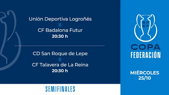 Actualidad Inicio Noticias Todas Categorías Institucional Expand Secondary Navigation Menu Presidencia Juntas directivas Igualdad Responsabilidad Social y Sostenibilidad Integridad Protección de la infancia Área médica Elecciones 2024 Federaciones Territoriales FIFA Patrocinadores rfef.es Museo Labor federativa Expand Secondary Navigation Menu Concursos Circulares Horarios Sanciones Mundial 2030 Competiciones masculinas Expand Secondary Navigation Menu Primera División Segunda División Primera Federación Segunda Federación Tercera Federación Copa del Rey Mapfre Supercopa Copa Federación Playoff de ascenso Competiciones UEFA Competiciones femeninas Expand Secondary Navigation Menu Primera División Femenina Primera Federación Iberdrola Segunda Federación FUTFEM Tercera Federación FUTFEM Copa de la Reina Iberdrola Supercopa Iberdrola Juveniles fútbol 11 Expand Secondary Navigation Menu División de Honor Juvenil Copa de Campeones Copa del Rey juvenil Youth League Selecciones autonómicas Expand Secondary Navigation Menu Copa de las Regiones de UEFA Femenino sub-16 Masculino sub-16 Femenino sub-14 Masculino sub-14 Femenino sub-12 Masculino sub-12 Fútbol sala Expand Secondary Navigation Menu Primera Masculina FS Primera FS Iberdrola Segunda Masculina FS Segunda Femenina FS Segunda B FS División de Honor Juvenil FS Copa de España Supercopa FS Supercopa Femenina FS Copa del Rey FS Copa de la Reina FS Copa de España Juvenil Campeonato de España Juvenil FS Futsal UEFA Champions League Selecciones autonómicas FS Otras competiciones Fútbol playa Expand Secondary Navigation Menu Primera División Playa Masc Segunda División Playa Masc Primera División Playa Fem Segunda División Playa Fem Copa Federación Playa Supercopa Playa Selecciones autonómicas Playa Campeonatos Clubes Base Playa Selecciones Playa adaptado Grassroots Expand Secondary Navigation Menu Playmakers Árbitros Expand Secondary Navigation Menu Designaciones VAR Expand Secondary Navigation Menu Audios VAR Entrenadores Expand Secondary Navigation Menu Premios Técnicos por el mundo Cursos Formación Expand Secondary Navigation Menu Formación online Formación presencial Selección Absoluta Selecciones Masculinas Expand Secondary Navigation Menu Sub-21 Sub-20 Sub-19 Sub-18 Sub-17 Sub-16 Sub-15 Sub-14 Selección Absoluta Femenina Selecciones Femeninas Expand Secondary Navigation Menu Sub-23 Sub-20 Femenina Sub-19 Femenina Sub-17 Femenina Sub-18 Femenina Sub-16 Femenina Sub-15 Femenina Sub-14 Femenina Selección Olímpica Expand Secondary Navigation Menu Selección Olímpica femenina Selección Olímpica masculina Selecciones fútbol sala masculinas Expand Secondary Navigation Menu Selección Absoluta fútbol sala Sub-23 fútbol sala Sub-21 fútbol sala Sub-18 fútbol sala Sub-19 fútbol sala Sub-17 fútbol sala Sub-16 fútbol sala Sub-15 fútbol sala Selecciones fútbol sala femeninas Expand Secondary Navigation Menu Selección Femenina fútbol sala Sub-23 Femenina fútbol sala Sub-21 Femenina fútbol sala Sub-19 Femenina fútbol sala Sub-18 Femenina fútbol sala Sub-17 Femenina fútbol sala Sub-15 Femenina fútbol sala Selecciones de fútbol playa Expand Secondary Navigation Menu Absoluta Masculina Playa Absoluta Femenina Playa Sub-21 Masculina Playa E-Sports Expand Secondary Navigation Menu e-Copa RFEF Leyendas Aplicar 57287 Resultados. Primera Masculina FS CRÓNICA Y RESUMEN | Industrias Santa Coloma se lleva su primera victoria de la temporada frente a Movistar Inter (2-1) El conjunto local gana ante su público 17 Octubre 2023 Primera Masculina FS CRÓNICA Y RESUMEN | Viña Albali Valdepeñas se lleva el encuentro ante Family Cash Alzira en el último minuto (2-3) El partido se decidió en una de las últimas jugadas 17 Octubre 2023 Primera Masculina FS CRÓNICA Y RESUMEN | El Barça gana en su visita a ElPozo Murcia Costa Cálida y sigue líder (2-4) Victoria de los balugranas en el Palacio de los Deportes de Murcia 17 Octubre 2023 Absoluta Masculina Playa OFICIAL | Convocatoria de la Selección de fútbol playa para la Copa NEOM Intercontinental España se enfrentará a Emiratos Árabes, Turquía y Brasil entre el 24 y el 29 de octubre de 2023 17 Octubre 2023 Copa Federación Consulta los horarios de las semifinales de la Copa Federación Los encuentros se disputarán el próximo miércoles, 25 de octubre, y se podrán seguir a través de los canales oficiales de la Real Federación Española de Fútbol 17 Octubre 2023 Absoluta Femenina Playa OFICIAL | Convocatoria de la Selección Femenina de fútbol playa para la Copa NEOM Intercontinental España se enfrentará a Inglaterra, República Checa y Brasil entre el 24 y el 29 de octubre de 2023 17 Octubre 2023 Video en el interior Sub-21 Santi Denia: "El objetivo era salir de aquí con 9 puntos y lo hemos cumplido" El seleccionador nacional sub-21 se ha mostrado satisfecho tras el Kazajistán 0-4 España 17 Octubre 2023 Video en el interior Galería de imágenes en el interior Sub-21 CRÓNICA | Goleada para seguir en lo más alto (0-4) Los goles de Fermín, Diego López, Fran Pérez y Samu sirven para conseguir pleno de victorias en la fase de clasificación para el Europeo de 2025 17 Octubre 2023 Copa del Rey FS Todo listo para que arranque la tercera ronda de la Copa del Rey Hoy y mañana se disputan los 14 encuentros 17 Octubre 2023 Galería de imágenes en el interior Copa del Rey Mapfre Nervios, emoción y sueños: espectacular sorteo de Copa Conexiones en directo con algunas de las localidades que hacen historia, numerosas manos inocentes y una fiesta de la ilusión del fútbol modesto: la primera eliminatoria de la Copa de todos se ha decidido en un espectacular evento 17 Octubre 2023 Galería de imágenes en el interior Copa del Rey Mapfre Así será la primera eliminatoria de la Copa Celebrado en la Ciudad del Fútbol de Las Rozas el sorteo que ha definido los emparejamientos de este inicio del torneo más prestigioso del fútbol español 17 Octubre 