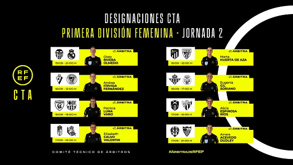 Actualidad Inicio Noticias Todas Categorías Institucional Expand Secondary Navigation Menu Presidencia Juntas directivas Igualdad Responsabilidad Social y Sostenibilidad Integridad Protección de la infancia Área médica Elecciones 2024 Federaciones Territoriales FIFA Patrocinadores rfef.es Museo Labor federativa Expand Secondary Navigation Menu Concursos Circulares Horarios Sanciones Mundial 2030 Competiciones masculinas Expand Secondary Navigation Menu Primera División Segunda División Primera Federación Segunda Federación Tercera Federación Copa del Rey Mapfre Supercopa Copa Federación Playoff de ascenso Competiciones UEFA Competiciones femeninas Expand Secondary Navigation Menu Primera División Femenina Primera Federación Iberdrola Segunda Federación FUTFEM Tercera Federación FUTFEM Copa de la Reina Iberdrola Supercopa Iberdrola Juveniles fútbol 11 Expand Secondary Navigation Menu División de Honor Juvenil Copa de Campeones Copa del Rey juvenil Youth League Selecciones autonómicas Expand Secondary Navigation Menu Copa de las Regiones de UEFA Femenino sub-16 Masculino sub-16 Femenino sub-14 Masculino sub-14 Femenino sub-12 Masculino sub-12 Fútbol sala Expand Secondary Navigation Menu Primera Masculina FS Primera FS Iberdrola Segunda Masculina FS Segunda Femenina FS Segunda B FS División de Honor Juvenil FS Copa de España Supercopa FS Supercopa Femenina FS Copa del Rey FS Copa de la Reina FS Copa de España Juvenil Campeonato de España Juvenil FS Futsal UEFA Champions League Selecciones autonómicas FS Otras competiciones Fútbol playa Expand Secondary Navigation Menu Primera División Playa Masc Segunda División Playa Masc Primera División Playa Fem Segunda División Playa Fem Copa Federación Playa Supercopa Playa Selecciones autonómicas Playa Campeonatos Clubes Base Playa Selecciones Playa adaptado Grassroots Expand Secondary Navigation Menu Playmakers Árbitros Expand Secondary Navigation Menu Designaciones VAR Expand Secondary Navigation Menu Audios VAR Entrenadores Expand Secondary Navigation Menu Premios Técnicos por el mundo Cursos Formación Expand Secondary Navigation Menu Formación online Formación presencial Selección Absoluta Selecciones Masculinas Expand Secondary Navigation Menu Sub-21 Sub-20 Sub-19 Sub-18 Sub-17 Sub-16 Sub-15 Sub-14 Selección Absoluta Femenina Selecciones Femeninas Expand Secondary Navigation Menu Sub-23 Sub-20 Femenina Sub-19 Femenina Sub-17 Femenina Sub-18 Femenina Sub-16 Femenina Sub-15 Femenina Sub-14 Femenina Selección Olímpica Expand Secondary Navigation Menu Selección Olímpica femenina Selección Olímpica masculina Selecciones fútbol sala masculinas Expand Secondary Navigation Menu Selección Absoluta fútbol sala Sub-23 fútbol sala Sub-21 fútbol sala Sub-18 fútbol sala Sub-19 fútbol sala Sub-17 fútbol sala Sub-16 fútbol sala Sub-15 fútbol sala Selecciones fútbol sala femeninas Expand Secondary Navigation Menu Selección Femenina fútbol sala Sub-23 Femenina fútbol sala Sub-21 Femenina fútbol sala Sub-19 Femenina fútbol sala Sub-18 Femenina fútbol sala Sub-17 Femenina fútbol sala Sub-15 Femenina fútbol sala Selecciones de fútbol playa Expand Secondary Navigation Menu Absoluta Masculina Playa Absoluta Femenina Playa Sub-21 Masculina Playa E-Sports Expand Secondary Navigation Menu e-Copa RFEF Leyendas Aplicar 57288 Resultados. Selección Absoluta fútbol sala El regreso a la selección de un Eric Pérez "más maduro" El pívot vuelve a una convocatoria dos años después 14 Septiembre 2023 Fútbol sala José Venancio López no continuará en la RFEF El ex seleccionador, cuatro veces campeón de Europa, comienza un nuevo reto en los banquillos 14 Septiembre 2023 Copa de la Reina FS Arranca este fin de semana la Copa de S. M. La Reina Se disputa la primera ronda de eliminatorias 14 Septiembre 2023 Designaciones, Primera Federación Iberdrola OFICIAL | Estas son las árbitras designadas para dirigir los partidos de la jornada 2 en Primera Federación Femenina DESIGNACIÓN ARBITRAL COMPLETA DE LA JORNADA 2 EN PRIMERA FEDERACIÓN FEMENINA 14 Septiembre 2023 Galería de imágenes en el interior Copa Federación Conoce los emparejamientos de la Fase Nacional de la Copa Federación 32 equipos buscaban rival de cara a la Fase Nacional de la Copa Federación. Esta será la cuarta edición desde que se inaugurarse el innovador y atractivo formato de eliminatorias 14 Septiembre 2023 Segunda Federación, Designaciones DESIGNACIONES | Estos son los árbitros de la jornada 3 en Segunda Federación Los 45 encuentros se llevarán a cabo entre el sábado 16 y el domingo 17 de septiembre 14 Septiembre 2023 Primera Federación, Designaciones DESIGNACIONES | Estos son los árbitros de la jornada 4 en Primera Federación Todos los encuentros se llevarán a cabo entre el sábado 16 y el domingo 17 de septiembre 14 Septiembre 2023 Primera División Femenina, Árbitros Presentamos la plantilla arbitral de Primera División Femenina 2023/24 Presentamos la plantilla arbitral de Primera División Femenina para la temporada 2023/24. Un total de 18 colegiadas que conforman la élite del arbitraje femenino en España. De ellas, cuatro con... 14 Septiembre 2023 Designaciones, Primera División Femenina OFICIAL | Estas son las árbitras designadas para dirigir los partidos de la jornada 2 en Primera División Femenina DESIGNACIÓN ARBITRAL COMPLETA DE LA JORNADA 2 EN PRIMERA DIVISIÓN FEMENINA 14 Septiembre 2023 Designaciones, Segunda División, VAR OFICIAL | Estos son los árbitros designados para dirigir los partidos de la jornada 6 en Segunda División DESIGNACIÓN ARBITRAL COMPLETA DE LA JORNADA 6 EN SEGUNDA DIVISIÓN 14 Septiembre 2023 Segunda Masculina FS Partido a la vista para CD UMA Antequera El viernes juega contra Jaén Paraíso Interior el IV Trofeo Diputación de Málaga 14 Septiembre 2023 Ver más Ver más