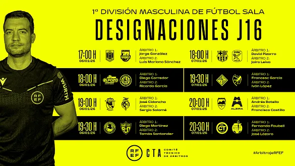 Actualidad Inicio Noticias Todas Categorías Institucional Expand Secondary Navigation Menu Presidencia Juntas directivas Igualdad Responsabilidad Social y Sostenibilidad Integridad Protección de la infancia Área médica Elecciones 2024 Federaciones Territoriales FIFA Patrocinadores rfef.es Museo Labor federativa Expand Secondary Navigation Menu Concursos Circulares Horarios Sanciones Mundial 2030 Competiciones masculinas Expand Secondary Navigation Menu Primera División Segunda División Primera Federación Segunda Federación Tercera Federación Copa del Rey Mapfre Supercopa Copa Federación Playoff de ascenso Competiciones UEFA Competiciones femeninas Expand Secondary Navigation Menu Primera División Femenina Primera Federación Iberdrola Segunda Federación FUTFEM Tercera Federación FUTFEM Copa de la Reina Iberdrola Supercopa Iberdrola Juveniles fútbol 11 Expand Secondary Navigation Menu División de Honor Juvenil Copa de Campeones Copa del Rey juvenil Youth League Selecciones autonómicas Expand Secondary Navigation Menu Copa de las Regiones de UEFA Femenino sub-16 Masculino sub-16 Femenino sub-14 Masculino sub-14 Femenino sub-12 Masculino sub-12 Fútbol sala Expand Secondary Navigation Menu Primera Masculina FS Primera FS Iberdrola Segunda Masculina FS Segunda Femenina FS Segunda B FS División de Honor Juvenil FS Copa de España Supercopa FS Supercopa Femenina FS Copa del Rey FS Copa de la Reina FS Copa de España Juvenil Campeonato de España Juvenil FS Futsal UEFA Champions League Selecciones autonómicas FS Otras competiciones Fútbol playa Expand Secondary Navigation Menu Primera División Playa Masc Segunda División Playa Masc Primera División Playa Fem Segunda División Playa Fem Copa Federación Playa Supercopa Playa Selecciones autonómicas Playa Campeonatos Clubes Base Playa Selecciones Playa adaptado Grassroots Expand Secondary Navigation Menu Playmakers Árbitros Expand Secondary Navigation Menu Designaciones VAR Expand Secondary Navigation Menu Audios VAR Entrenadores Expand Secondary Navigation Menu Premios Técnicos por el mundo Cursos Formación Expand Secondary Navigation Menu Formación online Formación presencial Selección Absoluta Selecciones Masculinas Expand Secondary Navigation Menu Sub-21 Sub-20 Sub-19 Sub-18 Sub-17 Sub-16 Sub-15 Sub-14 Selección Absoluta Femenina Selecciones Femeninas Expand Secondary Navigation Menu Sub-23 Sub-20 Femenina Sub-19 Femenina Sub-17 Femenina Sub-18 Femenina Sub-16 Femenina Sub-15 Femenina Sub-14 Femenina Selección Olímpica Expand Secondary Navigation Menu Selección Olímpica femenina Selección Olímpica masculina Selecciones fútbol sala masculinas Expand Secondary Navigation Menu Selección Absoluta fútbol sala Sub-23 fútbol sala Sub-21 fútbol sala Sub-18 fútbol sala Sub-19 fútbol sala Sub-17 fútbol sala Sub-16 fútbol sala Sub-15 fútbol sala Selecciones fútbol sala femeninas Expand Secondary Navigation Menu Selección Femenina fútbol sala Sub-23 Femenina fútbol sala Sub-21 Femenina fútbol sala Sub-19 Femenina fútbol sala Sub-18 Femenina fútbol sala Sub-17 Femenina fútbol sala Sub-15 Femenina fútbol sala Selecciones de fútbol playa Expand Secondary Navigation Menu Absoluta Masculina Playa Absoluta Femenina Playa Sub-21 Masculina Playa E-Sports Expand Secondary Navigation Menu e-Copa RFEF Leyendas Aplicar 57052 Resultados. Video en el interior Selección Absoluta Regalos en forma de gol El combinado nacional firmó una cifra de récord durante un 2025 más que prolífico de cara a puerta 05 Enero 2026 Video en el interior Selección Absoluta Femenina España reina en la Nations y acaba 2025 como número uno del ranking FIFA La Selección, que ha disputado dos finales en cuatro meses, pone el broche a un año memorable 05 Enero 2026 Video en el interior Árbitros, VAR ¡El derbi catalán, desde dentro! Así vivió el árbitro Víctor García un partido histórico Un árbitro catalán dirigió por primera vez el partido entre RCD Espanyol y FC Barcelona 05 Enero 2026 Primera Masculina FS PREVIA | Una jornada como regalo de Reyes La Primera División vuelve a la actualidad del fútbol sala después de una Supercopa de tronío y con la motivación de empezar 2026 de la mejor manera posible 05 Enero 2026 Video en el interior Supercopa La Supercopa de España apura su cuenta atrás Falta solo un día para que arranque oficialmente la cuadragésimo segunda edición de la Supercopa de España. Los cuatro conjuntos clasificados llegarán durante las próximas horas a Yeda, la segunda... 05 Enero 2026 Primera Masculina FS, Designaciones DESIGNACIONES | Estos son los árbitros de la jornada 16 en Primera División de fútbol sala Los encuentros se disputarán el martes 6 y el miércoles 7 de enero 05 Enero 2026 Primera FS Iberdrola PREVIA | Derbis por doquier en la jornada intersemanal El AD Ceuta FC - Melilla CD Torreblanca, podrá seguirse en Teledeporte (martes 6, 11:00 horas) 05 Enero 2026 Copa del Rey Mapfre, Copa de la Reina Iberdrola, Copa del Rey juvenil, Copa de las Regiones de UEFA Póquer de sorteos coperos en un miércoles para la ilusión La Copa del Rey Mapfre, Copa de la Reina Iberdrola, Copa del Rey Juvenil y Copa de las Regiones UEFA conocerán sus emparejamientos para las próximas eliminatorias 05 Enero 2026 Sub-16 Femenina Lista de convocadas para el estreno en 2026 La Selección Española sub-16 mantendrá varias jornadas de entrenamiento a partir del 12 de enero en la Ciudad del Fútbol 05 Enero 2026 Sub-17 Femenina Convocatoria para la primera concentración del año La Selección Española sub-17 se ejercitará entre el 12 y el 14 de enero en la Ciudad del Fútbol 05 Enero 2026 Copa del Rey Mapfre La Copa del Rey Mapfre entra en escena con el sorteo de octavos La Ciudad del Fútbol acogerá este miércoles a las 13:00 horas el sorteo de una eliminatoria que empieza a perfilar el camino hacia La Cartuja 05 Enero 2026 Ver más Ver más