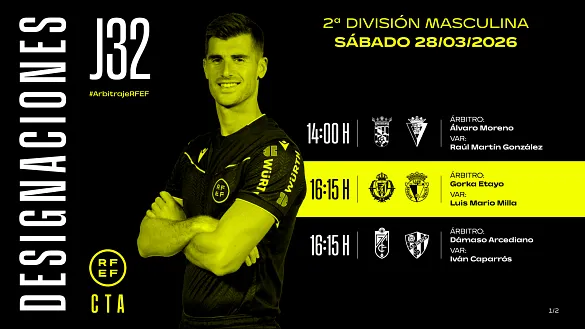 Actualidad Inicio Noticias Todas Categorías Institucional Expand Secondary Navigation Menu Presidencia Juntas directivas Igualdad Responsabilidad Social y Sostenibilidad Integridad Protección de la infancia Área médica Elecciones 2024 Federaciones Territoriales FIFA Patrocinadores rfef.es Museo Labor federativa Expand Secondary Navigation Menu Concursos Circulares Horarios Sanciones Mundial 2030 Competiciones masculinas Expand Secondary Navigation Menu Primera División Segunda División Primera Federación Segunda Federación Tercera Federación Copa del Rey Mapfre Supercopa Copa Federación Playoff de ascenso Competiciones UEFA Competiciones femeninas Expand Secondary Navigation Menu Primera División Femenina Primera Federación Iberdrola Segunda Federación FUTFEM Tercera Federación FUTFEM Copa de la Reina Iberdrola Supercopa Iberdrola Juveniles fútbol 11 Expand Secondary Navigation Menu División de Honor Juvenil Copa de Campeones Copa del Rey juvenil Youth League Selecciones autonómicas Expand Secondary Navigation Menu Copa de las Regiones de UEFA Femenino sub-16 Masculino sub-16 Femenino sub-14 Masculino sub-14 Femenino sub-12 Masculino sub-12 Fútbol sala Expand Secondary Navigation Menu Primera Masculina FS Primera FS Iberdrola Segunda Masculina FS Segunda Femenina FS Segunda B FS División de Honor Juvenil FS Copa de España Supercopa FS Supercopa Femenina FS Copa del Rey FS Copa de la Reina FS Copa de España Juvenil Campeonato de España Juvenil FS Futsal UEFA Champions League Selecciones autonómicas FS Otras competiciones Fútbol playa Expand Secondary Navigation Menu Primera División Playa Masc Segunda División Playa Masc Primera División Playa Fem Segunda División Playa Fem Copa Federación Playa Supercopa Playa Selecciones autonómicas Playa Campeonatos Clubes Base Playa Selecciones Playa adaptado Grassroots Expand Secondary Navigation Menu Playmakers Árbitros Expand Secondary Navigation Menu Designaciones VAR Expand Secondary Navigation Menu Audios VAR Entrenadores Expand Secondary Navigation Menu Premios Técnicos por el mundo Cursos Formación Expand Secondary Navigation Menu Formación online Formación presencial Selección Absoluta Selecciones Masculinas Expand Secondary Navigation Menu Sub-21 Sub-20 Sub-19 Sub-18 Sub-17 Sub-16 Sub-15 Sub-14 Selección Absoluta Femenina Selecciones Femeninas Expand Secondary Navigation Menu Sub-23 Sub-20 Femenina Sub-19 Femenina Sub-17 Femenina Sub-18 Femenina Sub-16 Femenina Sub-15 Femenina Sub-14 Femenina Selección Olímpica Expand Secondary Navigation Menu Selección Olímpica femenina Selección Olímpica masculina Selecciones fútbol sala masculinas Expand Secondary Navigation Menu Selección Absoluta fútbol sala Sub-23 fútbol sala Sub-21 fútbol sala Sub-18 fútbol sala Sub-19 fútbol sala Sub-17 fútbol sala Sub-16 fútbol sala Sub-15 fútbol sala Selecciones fútbol sala femeninas Expand Secondary Navigation Menu Selección Femenina fútbol sala Sub-23 Femenina fútbol sala Sub-21 Femenina fútbol sala Sub-19 Femenina fútbol sala Sub-18 Femenina fútbol sala Sub-17 Femenina fútbol sala Sub-15 Femenina fútbol sala Selecciones de fútbol playa Expand Secondary Navigation Menu Absoluta Masculina Playa Absoluta Femenina Playa Sub-21 Masculina Playa E-Sports Expand Secondary Navigation Menu e-Copa RFEF Leyendas Aplicar 57079 Resultados. Galería de imágenes en el interior Sub-21 Seis de seis en Chipre España, líder sin fisuras, golea a Chipre (0-7) y suma la sexta victoria en esta fase de clasificación para el Europeo 27 Marzo 2026 Galería de imágenes en el interior Institucional, Presidencia Rafael Louzán se reúne en el Estadio de La Cerámica con el presidente del Villarreal CF La Selección española disputa hoy en el recinto groguet su primer partido del presente año 27 Marzo 2026 Primera Federación Iberdrola PREVIA | Cuatro encuentros para el desenlace El Deportivo Alavés podría asegurar su plaza de ascenso a la Liga F esta jornada 27 Marzo 2026 Selección Absoluta, Selección Absoluta Femenina Supradyn, nuevo multivitamínico oficial de la Selección española La alianza suscrita se prolongará hasta 2030 27 Marzo 2026 Galería de imágenes en el interior Selección Absoluta Castellón conoce a sus ídolos a pocas horas del partido contra Serbia La Selección recibe el calor de la afición local antes de medirse con Serbia en La Cerámica 27 Marzo 2026 Galería de imágenes en el interior Primera Federación PREVIA | Recta final de infarto La trigésima jornada de Primera Federación Versus e-Learning llega con enfrentamientos de alto calibre 27 Marzo 2026 Designaciones, Segunda División, VAR Designaciones | Estos son los árbitros para los partidos del sábado 28 de marzo en Segunda División DESIGNACIÓN ARBITRAL COMPLETA | SEGUNDA DIVISIÓN | TEMPORADA 2025-2026 | JORNADA 32 | SÁBADO 28 DE MARZO 27 Marzo 2026 Video en el interior Selección Absoluta El latido de Rodrigo que guía a la Selección El capitán del combinado nacional vuelve a la ciudad que le vio crecer. Esta noche España se mide a Serbia en el primer partido de 2026 27 Marzo 2026 Selección Absoluta Femenina La lista de Sonia Bermúdez, el viernes 3 de abril La seleccionadora nacional dará a conocer los nombres de las convocadas para los duelos ante Inglaterra y Ucrania 27 Marzo 2026 Segunda Federación PREVIA | Sólo quedan seis La Segunda Federación continúa a ritmo de crucero con la disputa de la Jornada 29 de competición. Foto: Gimnástica Segoviana 27 Marzo 2026 Selección Absoluta Estos son los dorsales que lucirá España contra Serbia La Selección española estrenará su nueva segunda equipación en su primer partido de preparación para el Mundial (21:00 horas, La 1 de TVE) 27 Marzo 2026 Ver más Ver más