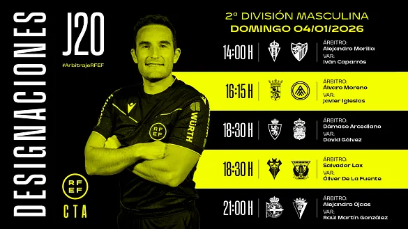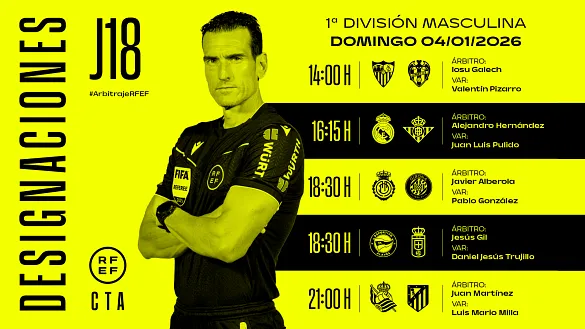 Actualidad Inicio Noticias Todas Categorías Institucional Expand Secondary Navigation Menu Presidencia Juntas directivas Igualdad Responsabilidad Social y Sostenibilidad Integridad Protección de la infancia Área médica Elecciones 2024 Federaciones Territoriales FIFA Patrocinadores rfef.es Museo Labor federativa Expand Secondary Navigation Menu Concursos Circulares Horarios Sanciones Mundial 2030 Competiciones masculinas Expand Secondary Navigation Menu Primera División Segunda División Primera Federación Segunda Federación Tercera Federación Copa del Rey Mapfre Supercopa Copa Federación Playoff de ascenso Competiciones UEFA Competiciones femeninas Expand Secondary Navigation Menu Primera División Femenina Primera Federación Iberdrola Segunda Federación FUTFEM Tercera Federación FUTFEM Copa de la Reina Iberdrola Supercopa Iberdrola Juveniles fútbol 11 Expand Secondary Navigation Menu División de Honor Juvenil Copa de Campeones Copa del Rey juvenil Youth League Selecciones autonómicas Expand Secondary Navigation Menu Copa de las Regiones de UEFA Femenino sub-16 Masculino sub-16 Femenino sub-14 Masculino sub-14 Femenino sub-12 Masculino sub-12 Fútbol sala Expand Secondary Navigation Menu Primera Masculina FS Primera FS Iberdrola Segunda Masculina FS Segunda Femenina FS Segunda B FS División de Honor Juvenil FS Copa de España Supercopa FS Supercopa Femenina FS Copa del Rey FS Copa de la Reina FS Copa de España Juvenil Campeonato de España Juvenil FS Futsal UEFA Champions League Selecciones autonómicas FS Otras competiciones Fútbol playa Expand Secondary Navigation Menu Primera División Playa Masc Segunda División Playa Masc Primera División Playa Fem Segunda División Playa Fem Copa Federación Playa Supercopa Playa Selecciones autonómicas Playa Campeonatos Clubes Base Playa Selecciones Playa adaptado Grassroots Expand Secondary Navigation Menu Playmakers Árbitros Expand Secondary Navigation Menu Designaciones VAR Expand Secondary Navigation Menu Audios VAR Entrenadores Expand Secondary Navigation Menu Premios Técnicos por el mundo Cursos Formación Expand Secondary Navigation Menu Formación online Formación presencial Selección Absoluta Selecciones Masculinas Expand Secondary Navigation Menu Sub-21 Sub-20 Sub-19 Sub-18 Sub-17 Sub-16 Sub-15 Sub-14 Selección Absoluta Femenina Selecciones Femeninas Expand Secondary Navigation Menu Sub-23 Sub-20 Femenina Sub-19 Femenina Sub-17 Femenina Sub-18 Femenina Sub-16 Femenina Sub-15 Femenina Sub-14 Femenina Selección Olímpica Expand Secondary Navigation Menu Selección Olímpica femenina Selección Olímpica masculina Selecciones fútbol sala masculinas Expand Secondary Navigation Menu Selección Absoluta fútbol sala Sub-23 fútbol sala Sub-21 fútbol sala Sub-18 fútbol sala Sub-19 fútbol sala Sub-17 fútbol sala Sub-16 fútbol sala Sub-15 fútbol sala Selecciones fútbol sala femeninas Expand Secondary Navigation Menu Selección Femenina fútbol sala Sub-23 Femenina fútbol sala Sub-21 Femenina fútbol sala Sub-19 Femenina fútbol sala Sub-18 Femenina fútbol sala Sub-17 Femenina fútbol sala Sub-15 Femenina fútbol sala Selecciones de fútbol playa Expand Secondary Navigation Menu Absoluta Masculina Playa Absoluta Femenina Playa Sub-21 Masculina Playa E-Sports Expand Secondary Navigation Menu e-Copa RFEF Leyendas Aplicar 57056 Resultados. Video en el interior Supercopa FS CRÓNICA Y RESUMEN | Jimbee Cartagena peleará por su tercera Supercopa consecutiva El Servigroup Peñíscola apretó al vigente bicampeón del torneo y le exigió emplearse a fondo en un choque que perdió por la mínima tras presentar una intensa batalla en Son Moix (4-3) 03 Enero 2026 Primera FS Iberdrola Jornada de muchas emociones en la Primera FS Iberdrola Los cinco primeros clasificados saldan sus encuentros con victorias 03 Enero 2026 Segunda División, Designaciones, VAR Designaciones | Estos son los árbitros para los partidos del domingo 4 de enero de la jornada 20 en Segunda División DESIGNACIÓN ARBITRAL COMPLETA DE LOS PARTIDOS DEL DOMINGO 4 DE ENERO DE LA JORNADA 20 EN SEGUNDA DIVISIÓN 03 Enero 2026 Primera División, Designaciones, VAR Designaciones | Estos son los árbitros para los partidos del domingo 4 de enero de la jornada 18 en Primera División DESIGNACIÓN ARBITRAL COMPLETA DE LOS PARTIDOS DEL DOMINGO 4 DE ENERO DE LA JORNADA 18 EN PRIMERA DIVISIÓN 03 Enero 2026 Video en el interior Selección Femenina fútbol sala INSIDE | Un Mundial que quedará grabado en bronce Filipinas se ha ganado en este 2025 un hueco muy especial en la historia del fútbol sala femenino y, como consecuencia, de la selección española. Allí se disputó el primer Mundial y de allí... 03 Enero 2026 Primera FS Iberdrola RESÚMENES | Primera jornada de un intenso 2026 Disfruta de todos los partidos y los mejores goles de la 12ª jornada, ¡A golpe de click! 03 Enero 2026 Galería de imágenes en el interior Supercopa FS Todo preparado para la disputa del primer título del año Jimbee Cartagena Costa Cálida, Servigroup Peñíscola, Movistar Inter e Illes Balears Palma Futsal, han entrenado sobre la Pista Azul de la RFEF antes de la disputa de las semifinales 02 Enero 2026 Supercopa FS, Designaciones Designaciones arbitrales de las semifinales de la Supercopa de España de fútbol sala masculino Ambos partidos se disputarán el sábado 3 de enero en Son Moix 02 Enero 2026 Video en el interior Selecciones Masculinas, Sub-21, Sub-20, Sub-19, Sub-18, Sub-17, Sub-16, Sub-15, Sub-14 Golazos para un futuro ilusionante Este es el listado de los diez mejores tantos que nos regalaron nuestras selecciones inferiores en 2025 02 Enero 2026 Primera Federación Partidazos para empezar el año Pontevedra CF - Racing Club Ferrol y Hércules de Alicante CF - CE Sabadell FC son los partidazos de la jornada 18 02 Enero 2026 Video en el interior Selección Absoluta Femenina INSIDE | Las reinas de la Nations volvieron a brillar Imágenes inéditas del doble duelo a
