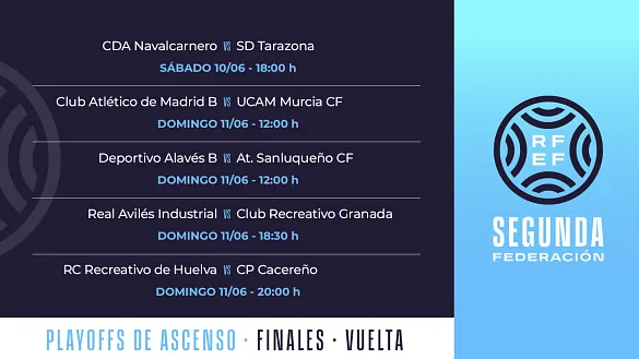 Actualidad Inicio Noticias Todas Categorías Institucional Expand Secondary Navigation Menu Presidencia Juntas directivas Igualdad Responsabilidad Social y Sostenibilidad Integridad Protección de la infancia Área médica Elecciones 2024 Federaciones Territoriales FIFA Patrocinadores rfef.es Museo Labor federativa Expand Secondary Navigation Menu Concursos Circulares Horarios Sanciones Mundial 2030 Competiciones masculinas Expand Secondary Navigation Menu Primera División Segunda División Primera Federación Segunda Federación Tercera Federación Copa del Rey Mapfre Supercopa Copa Federación Playoff de ascenso Competiciones UEFA Competiciones femeninas Expand Secondary Navigation Menu Primera División Femenina Primera Federación Iberdrola Segunda Federación FUTFEM Tercera Federación FUTFEM Copa de la Reina Iberdrola Supercopa Iberdrola Juveniles fútbol 11 Expand Secondary Navigation Menu División de Honor Juvenil Copa de Campeones Copa del Rey juvenil Youth League Selecciones autonómicas Expand Secondary Navigation Menu Copa de las Regiones de UEFA Femenino sub-16 Masculino sub-16 Femenino sub-14 Masculino sub-14 Femenino sub-12 Masculino sub-12 Fútbol sala Expand Secondary Navigation Menu Primera Masculina FS Primera FS Iberdrola Segunda Masculina FS Segunda Femenina FS Segunda B FS División de Honor Juvenil FS Copa de España Supercopa FS Supercopa Femenina FS Copa del Rey FS Copa de la Reina FS Copa de España Juvenil Campeonato de España Juvenil FS Futsal UEFA Champions League Selecciones autonómicas FS Otras competiciones Fútbol playa Expand Secondary Navigation Menu Primera División Playa Masc Segunda División Playa Masc Primera División Playa Fem Segunda División Playa Fem Copa Federación Playa Supercopa Playa Selecciones autonómicas Playa Campeonatos Clubes Base Playa Selecciones Playa adaptado Grassroots Expand Secondary Navigation Menu Playmakers Árbitros Expand Secondary Navigation Menu Designaciones VAR Expand Secondary Navigation Menu Audios VAR Entrenadores Expand Secondary Navigation Menu Premios Técnicos por el mundo Cursos Formación Expand Secondary Navigation Menu Formación online Formación presencial Selección Absoluta Selecciones Masculinas Expand Secondary Navigation Menu Sub-21 Sub-20 Sub-19 Sub-18 Sub-17 Sub-16 Sub-15 Sub-14 Selección Absoluta Femenina Selecciones Femeninas Expand Secondary Navigation Menu Sub-23 Sub-20 Femenina Sub-19 Femenina Sub-17 Femenina Sub-18 Femenina Sub-16 Femenina Sub-15 Femenina Sub-14 Femenina Selección Olímpica Expand Secondary Navigation Menu Selección Olímpica femenina Selección Olímpica masculina Selecciones fútbol sala masculinas Expand Secondary Navigation Menu Selección Absoluta fútbol sala Sub-23 fútbol sala Sub-21 fútbol sala Sub-18 fútbol sala Sub-19 fútbol sala Sub-17 fútbol sala Sub-16 fútbol sala Sub-15 fútbol sala Selecciones fútbol sala femeninas Expand Secondary Navigation Menu Selección Femenina fútbol sala Sub-23 Femenina fútbol sala Sub-21 Femenina fútbol sala Sub-19 Femenina fútbol sala Sub-18 Femenina fútbol sala Sub-17 Femenina fútbol sala Sub-15 Femenina fútbol sala Selecciones de fútbol playa Expand Secondary Navigation Menu Absoluta Masculina Playa Absoluta Femenina Playa Sub-21 Masculina Playa E-Sports Expand Secondary Navigation Menu e-Copa RFEF Leyendas Aplicar 57093 Resultados. Primera División, Museo ¿Por qué "Pichichi"? Te contamos a quién debe su nombre el premio que distingue al máximo goleador de la Primera División. ¿Sabías que era sobrino de Miguel de Unamuno? 30 Mayo 2023 Galería de imágenes en el interior Segunda Federación Horarios completos de las finales por el ascenso a Primera Federación Los encuentros de ida se jugarán el 3-4 de junio y los de vuelta el 10-11 del mismo mes 30 Mayo 2023 Galería de imágenes en el interior E-Sports Scientiffic Nutrition, nuevo proveedor oficial de los Servicios Médicos de la RFEF En el acuerdo destaca que la marca se convierte en Suplemento deportivo oficial de la Selección Española de eFootball 30 Mayo 2023 Sub-17 PREVIA | España quiere seguir celebrando en Budapest La Selección española Sub-17 busca ante un "enemigo habitual" el pase a la gran final del Campeonato de Europa. Francia es el último escollo para los de Julen Guerrero en su objetivo de luchar por las medallas en la deslumbrante capital húngara 30 Mayo 2023 Árbitros, Designaciones, Primera Federación OFICIAL | Estos son los árbitros seleccionados para dirigir los playoffs de ascenso a Segunda División LISTADO COMPLETO DE ÁRBITROS QUE VAN A DIRIGIR LOS PARTIDOS DEL PLAYOFF DE ASCENSO A SEGUNDA DIVISIÓN 29 Mayo 2023 Segunda Masculina FS Pescados Rubén Burela y AD Sala 10 Zaragoza se juegan la final de los playoffs en directo por rfef.es El tercer partido de la eliminatoria que se disputa en Vista Alegre se podrá seguir en abierto 29 Mayo 2023 Segunda Federación FUTFEM, Primera Federación Iberdrola ¡Este es el horario de la vuelta de los playoffs de ascenso a Primera Federación Iberdrola! El Levante UD 'B' y el CE Europa se enfrentan en el partido de vuelta el sábado a las 18:00 horas 29 Mayo 2023 Primera División Femenina, Primera Federación Iberdrola ¡Definido el horario de la ida de los playoffs de ascenso a Primera División! Granada CF y Deportivo Abanca se medirán el sábado 3 de junio a las 20:00 horas en su lucha particular por ocupar la última plaza de Primera División 29 Mayo 2023 Segunda Masculina FS A Malata decidirá la eliminatoria O Parrulo Ferrol se mide al Family Cash Alzira en el tercer partido 29 Mayo 2023 Sub-17 ¿Te "cuelas" con nosotros en el Pancho Arena de Felcsút? Así de espectacular luce el estadio en honor a la leyenda Ferenc Puskás que acogerá las semifinales del Europeo de Hungría que disputarán mañana España y Francia 29 Mayo 2023 Segunda B FS Horarios de los partidos de vuelta de los playoffs Cuatro eliminatorias se resolverán el sábado y otras dos el domingo 29 May