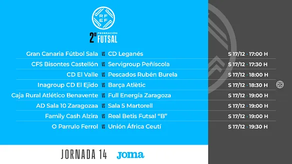 Actualidad Inicio Noticias Todas Categorías Institucional Expand Secondary Navigation Menu Presidencia Juntas directivas Igualdad Responsabilidad Social y Sostenibilidad Integridad Protección de la infancia Área médica Elecciones 2024 Federaciones Territoriales FIFA Patrocinadores rfef.es Museo Labor federativa Expand Secondary Navigation Menu Concursos Circulares Horarios Sanciones Mundial 2030 Competiciones masculinas Expand Secondary Navigation Menu Primera División Segunda División Primera Federación Segunda Federación Tercera Federación Copa del Rey Mapfre Supercopa Copa Federación Playoff de ascenso Competiciones UEFA Competiciones femeninas Expand Secondary Navigation Menu Primera División Femenina Primera Federación Iberdrola Segunda Federación FUTFEM Tercera Federación FUTFEM Copa de la Reina Iberdrola Supercopa Iberdrola Juveniles fútbol 11 Expand Secondary Navigation Menu División de Honor Juvenil Copa de Campeones Copa del Rey juvenil Youth League Selecciones autonómicas Expand Secondary Navigation Menu Copa de las Regiones de UEFA Femenino sub-16 Masculino sub-16 Femenino sub-14 Masculino sub-14 Femenino sub-12 Masculino sub-12 Fútbol sala Expand Secondary Navigation Menu Primera Masculina FS Primera FS Iberdrola Segunda Masculina FS Segunda Femenina FS Segunda B FS División de Honor Juvenil FS Copa de España Supercopa FS Supercopa Femenina FS Copa del Rey FS Copa de la Reina FS Copa de España Juvenil Campeonato de España Juvenil FS Futsal UEFA Champions League Selecciones autonómicas FS Otras competiciones Fútbol playa Expand Secondary Navigation Menu Primera División Playa Masc Segunda División Playa Masc Primera División Playa Fem Segunda División Playa Fem Copa Federación Playa Supercopa Playa Selecciones autonómicas Playa Campeonatos Clubes Base Playa Selecciones Playa adaptado Grassroots Expand Secondary Navigation Menu Playmakers Árbitros Expand Secondary Navigation Menu Designaciones VAR Expand Secondary Navigation Menu Audios VAR Entrenadores Expand Secondary Navigation Menu Premios Técnicos por el mundo Cursos Formación Expand Secondary Navigation Menu Formación online Formación presencial Selección Absoluta Selecciones Masculinas Expand Secondary Navigation Menu Sub-21 Sub-20 Sub-19 Sub-18 Sub-17 Sub-16 Sub-15 Sub-14 Selección Absoluta Femenina Selecciones Femeninas Expand Secondary Navigation Menu Sub-23 Sub-20 Femenina Sub-19 Femenina Sub-17 Femenina Sub-18 Femenina Sub-16 Femenina Sub-15 Femenina Sub-14 Femenina Selección Olímpica Expand Secondary Navigation Menu Selección Olímpica femenina Selección Olímpica masculina Selecciones fútbol sala masculinas Expand Secondary Navigation Menu Selección Absoluta fútbol sala Sub-23 fútbol sala Sub-21 fútbol sala Sub-18 fútbol sala Sub-19 fútbol sala Sub-17 fútbol sala Sub-16 fútbol sala Sub-15 fútbol sala Selecciones fútbol sala femeninas Expand Secondary Navigation Menu Selección Femenina fútbol sala Sub-23 Femenina fútbol sala Sub-21 Femenina fútbol sala Sub-19 Femenina fútbol sala Sub-18 Femenina fútbol sala Sub-17 Femenina fútbol sala Sub-15 Femenina fútbol sala Selecciones de fútbol playa Expand Secondary Navigation Menu Absoluta Masculina Playa Absoluta Femenina Playa Sub-21 Masculina Playa E-Sports Expand Secondary Navigation Menu e-Copa RFEF Leyendas Aplicar 57287 Resultados. Segunda Femenina FS Sin cambios en lo más alto Los puestos de acceso al playoff no sufren cambios tras la decimoprimera jornada de la Segunda Federación 13 Diciembre 2022 Árbitros, Primera División Javier Alberola: "El susto ha sido muy grande, pero estoy ya para volver" El árbitro de Primera División regresará a los terrenos de juego tras estar cuatro meses de baja por un problema de salud que le obligó a ser intervenido en el Hospital Universitario de Toledo. 13 Diciembre 2022 Selección Femenina fútbol sala Los duelos Selección Femenina de Fútbol Sala contra Italia se podrán seguir en Teledeporte El combinado de Clàudia Pons se enfrentará a las italianas hoy y mañana en la Ciudad del Fútbol de Las Rozas 13 Diciembre 2022 Selección Femenina fútbol sala PREVIA | Doble duelo ante Italia para cerrar un 2022 para el recuerdo La selección femenina de fútbol sala afronta dos amistosos para preparar el Europeo 13 Diciembre 2022 Video en el interior Selección Absoluta Una sonrisa desde primera hora: así ha transcurrido la jornada de presentación para el nuevo seleccionador Vivimos con Luis de la Fuente las horas más intensas de su puesta de largo como nuevo responsable de la Absoluta 12 Diciembre 2022 Primera Federación ¡Elige el mejor gol de la 16ª jornada! Aquí os mostramos cuatro grandes tantos firmados durante el fin de semana por Max Svensson, Enzo Zidane, Josema Raigal y Juanmi Carrión. La 16ª jornada de Primera Federación nos ha dejado un total... 12 Diciembre 2022 Segunda Masculina FS La Segunda Federación continúa a todo gas antes del parón navideño La decimotercera jornada en Segunda Federación 12 Diciembre 2022 Galería de imágenes en el interior Primera Masculina FS, Grassroots La gira Megacracks aterriza en la Ciudad del Fútbol Niños y niñas de diferentes colegios han disfrutado en el Pabellón de la Ciudad del Fútbol de una mañana de entrenamiento con jugadores del Movistar Inter FS, equipo de Primera Federación Futsal 12 Diciembre 2022 Primera FS Iberdrola Todo sigue igual La decimosegunda jornada en Primera Federación acabó con pocos movimientos en la tabla clasificatoria 12 Diciembre 2022 Horarios, Segunda Masculina FS Conoce los horarios de la decimocuarta jornada en Segunda Federación Estos son los horarios de la próxima jornada que se disputará íntegramente en la tarde del sábado 17 12 Diciembre 2022 Horarios, Primera FS Iberdrola Ya disponibles los horarios de la jornada 13 en Primera Federación Femenina Estos son los encuentros que se disputarán el sábado 17 y domingo 18 de diciembre 12 Diciembre 2022 Ver más 