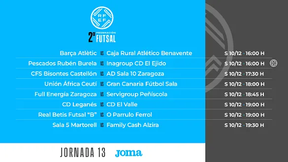 Actualidad Inicio Noticias Todas Categorías Institucional Expand Secondary Navigation Menu Presidencia Juntas directivas Igualdad Responsabilidad Social y Sostenibilidad Integridad Protección de la infancia Área médica Elecciones 2024 Federaciones Territoriales FIFA Patrocinadores rfef.es Museo Labor federativa Expand Secondary Navigation Menu Concursos Circulares Horarios Sanciones Mundial 2030 Competiciones masculinas Expand Secondary Navigation Menu Primera División Segunda División Primera Federación Segunda Federación Tercera Federación Copa del Rey Mapfre Supercopa Copa Federación Playoff de ascenso Competiciones UEFA Competiciones femeninas Expand Secondary Navigation Menu Primera División Femenina Primera Federación Iberdrola Segunda Federación FUTFEM Tercera Federación FUTFEM Copa de la Reina Iberdrola Supercopa Iberdrola Juveniles fútbol 11 Expand Secondary Navigation Menu División de Honor Juvenil Copa de Campeones Copa del Rey juvenil Youth League Selecciones autonómicas Expand Secondary Navigation Menu Copa de las Regiones de UEFA Femenino sub-16 Masculino sub-16 Femenino sub-14 Masculino sub-14 Femenino sub-12 Masculino sub-12 Fútbol sala Expand Secondary Navigation Menu Primera Masculina FS Primera FS Iberdrola Segunda Masculina FS Segunda Femenina FS Segunda B FS División de Honor Juvenil FS Copa de España Supercopa FS Supercopa Femenina FS Copa del Rey FS Copa de la Reina FS Copa de España Juvenil Campeonato de España Juvenil FS Futsal UEFA Champions League Selecciones autonómicas FS Otras competiciones Fútbol playa Expand Secondary Navigation Menu Primera División Playa Masc Segunda División Playa Masc Primera División Playa Fem Segunda División Playa Fem Copa Federación Playa Supercopa Playa Selecciones autonómicas Playa Campeonatos Clubes Base Playa Selecciones Playa adaptado Grassroots Expand Secondary Navigation Menu Playmakers Árbitros Expand Secondary Navigation Menu Designaciones VAR Expand Secondary Navigation Menu Audios VAR Entrenadores Expand Secondary Navigation Menu Premios Técnicos por el mundo Cursos Formación Expand Secondary Navigation Menu Formación online Formación presencial Selección Absoluta Selecciones Masculinas Expand Secondary Navigation Menu Sub-21 Sub-20 Sub-19 Sub-18 Sub-17 Sub-16 Sub-15 Sub-14 Selección Absoluta Femenina Selecciones Femeninas Expand Secondary Navigation Menu Sub-23 Sub-20 Femenina Sub-19 Femenina Sub-17 Femenina Sub-18 Femenina Sub-16 Femenina Sub-15 Femenina Sub-14 Femenina Selección Olímpica Expand Secondary Navigation Menu Selección Olímpica femenina Selección Olímpica masculina Selecciones fútbol sala masculinas Expand Secondary Navigation Menu Selección Absoluta fútbol sala Sub-23 fútbol sala Sub-21 fútbol sala Sub-18 fútbol sala Sub-19 fútbol sala Sub-17 fútbol sala Sub-16 fútbol sala Sub-15 fútbol sala Selecciones fútbol sala femeninas Expand Secondary Navigation Menu Selección Femenina fútbol sala Sub-23 Femenina fútbol sala Sub-21 Femenina fútbol sala Sub-19 Femenina fútbol sala Sub-18 Femenina fútbol sala Sub-17 Femenina fútbol sala Sub-15 Femenina fútbol sala Selecciones de fútbol playa Expand Secondary Navigation Menu Absoluta Masculina Playa Absoluta Femenina Playa Sub-21 Masculina Playa E-Sports Expand Secondary Navigation Menu e-Copa RFEF Leyendas Aplicar 57290 Resultados. Selección Femenina fútbol sala OFICIAL | Salen a la venta las entradas para el doble duelo ante Italia Las localidades pueden comprarse online a partir de este miércoles 07 Diciembre 2022 Galería de imágenes en el interior Sub-17 Femenina Dinamarca, Serbia y Bielorrusia, obstáculos para llegar al Europeo sub-17 España viajará a Serbia quien acogerá los encuentros del grupo 6 de la segunda ronda de la Liga A 07 Diciembre 2022 Horarios, Segunda Masculina FS Descubre los horarios de la decimotercera jornada en Segunda Federación Masculina Todos los encuentros se disputarán el sábado 10 de diciembre 07 Diciembre 2022 Horarios, Primera FS Iberdrola Ya disponibles los horarios de la jornada 12 en Primera Federación Femenina Conoce los horarios de la jornada que se disputará el sábado 10 y domingo 11 de diciembre 07 Diciembre 2022 Horarios, Primera Masculina FS Consulta los horarios de la decimotercera jornada en Primera Federación Masculina Ya están disponibles los horarios de la decimotercera fecha de la competición doméstica 07 Diciembre 2022 Galería de imágenes en el interior Sub-19 Femenina España-19 se medirá a Inglaterra, Eslovenia y Bielorrusia en la ronda 2 del Europeo España acogerá los enfrentamientos del grupo 4 de la segunda ronda de la Liga A 07 Diciembre 2022 Galería de imágenes en el interior Primera Masculina FS Batería se pone como máximo goleador de doblete en doblete El brasileño ha marcado seis goles en los tres últimos partidos 07 Diciembre 2022 Primera Masculina FS Quesos El Hidalgo Manzanares FS 3-5 Viña Albali Valdepeñas Viña Albali Valdepeñas consiguió su tercera victoria de forma consecutiva tras imponerse a Quesos El Hidalgo Manzanares FS. Con estos tres puntos, los valdepeñeros se asientan en puestos de Copa de... 06 Diciembre 2022 Copa de la Reina FS Estos son los ocho clasificados para la fase final de la Copa de SM la Reina Pescados Rubén Burela, Móstoles FSF, Melilla Sport Capital Torreblanca FS, Atlético Navalcarnero, Arriva AD Alcorcón FSF, Marín Futsal, Gran Canaria FSF Teldeportivo y STV Roldán FS.... 06 Diciembre 2022 Video en el interior Primera Masculina FS RESUMEN | Movistar Inter FS 2-1 ElPozo Murcia Costa Cálida El Movistar Inter FS consiguió su tercera victoria consecutiva, en el Clásico. Con este triunfo sobre ElPozo Murcia Costa Cálida, los hombres de Pato prolongan su buena racha y se acercan a... 06 Diciembre 2022 Primera Masculina FS Jimbee Cartagena 2-1 Noia Portus Apostoli Jimbee Cartagena consiguió volver a la senda de la victoria tras el tropiezo de la pasada jornada en Valdepeñas. Los
