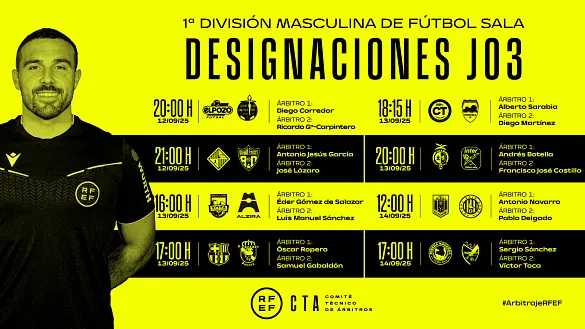 Actualidad Inicio Noticias Todas Categorías Institucional Expand Secondary Navigation Menu Presidencia Juntas directivas Igualdad Responsabilidad Social y Sostenibilidad Integridad Protección de la infancia Área médica Elecciones 2024 Federaciones Territoriales FIFA Patrocinadores rfef.es Museo Labor federativa Expand Secondary Navigation Menu Concursos Circulares Horarios Sanciones Mundial 2030 Competiciones masculinas Expand Secondary Navigation Menu Primera División Segunda División Primera Federación Segunda Federación Tercera Federación Copa del Rey Mapfre Supercopa Copa Federación Playoff de ascenso Competiciones UEFA Competiciones femeninas Expand Secondary Navigation Menu Primera División Femenina Primera Federación Iberdrola Segunda Federación FUTFEM Tercera Federación FUTFEM Copa de la Reina Iberdrola Supercopa Iberdrola Juveniles fútbol 11 Expand Secondary Navigation Menu División de Honor Juvenil Copa de Campeones Copa del Rey juvenil Youth League Selecciones autonómicas Expand Secondary Navigation Menu Copa de las Regiones de UEFA Femenino sub-16 Masculino sub-16 Femenino sub-14 Masculino sub-14 Femenino sub-12 Masculino sub-12 Fútbol sala Expand Secondary Navigation Menu Primera Masculina FS Primera FS Iberdrola Segunda Masculina FS Segunda Femenina FS Segunda B FS División de Honor Juvenil FS Copa de España Supercopa FS Supercopa Femenina FS Copa del Rey FS Copa de la Reina FS Copa de España Juvenil Campeonato de España Juvenil FS Futsal UEFA Champions League Selecciones autonómicas FS Otras competiciones Fútbol playa Expand Secondary Navigation Menu Primera División Playa Masc Segunda División Playa Masc Primera División Playa Fem Segunda División Playa Fem Copa Federación Playa Supercopa Playa Selecciones autonómicas Playa Campeonatos Clubes Base Playa Selecciones Playa adaptado Grassroots Expand Secondary Navigation Menu Playmakers Árbitros Expand Secondary Navigation Menu Designaciones VAR Expand Secondary Navigation Menu Audios VAR Entrenadores Expand Secondary Navigation Menu Premios Técnicos por el mundo Cursos Formación Expand Secondary Navigation Menu Formación online Formación presencial Selección Absoluta Selecciones Masculinas Expand Secondary Navigation Menu Sub-21 Sub-20 Sub-19 Sub-18 Sub-17 Sub-16 Sub-15 Sub-14 Selección Absoluta Femenina Selecciones Femeninas Expand Secondary Navigation Menu Sub-23 Sub-20 Femenina Sub-19 Femenina Sub-17 Femenina Sub-18 Femenina Sub-16 Femenina Sub-15 Femenina Sub-14 Femenina Selección Olímpica Expand Secondary Navigation Menu Selección Olímpica femenina Selección Olímpica masculina Selecciones fútbol sala masculinas Expand Secondary Navigation Menu Selección Absoluta fútbol sala Sub-23 fútbol sala Sub-21 fútbol sala Sub-18 fútbol sala Sub-19 fútbol sala Sub-17 fútbol sala Sub-16 fútbol sala Sub-15 fútbol sala Selecciones fútbol sala femeninas Expand Secondary Navigation Menu Selección Femenina fútbol sala Sub-23 Femenina fútbol sala Sub-21 Femenina fútbol sala Sub-19 Femenina fútbol sala Sub-18 Femenina fútbol sala Sub-17 Femenina fútbol sala Sub-15 Femenina fútbol sala Selecciones de fútbol playa Expand Secondary Navigation Menu Absoluta Masculina Playa Absoluta Femenina Playa Sub-21 Masculina Playa E-Sports Expand Secondary Navigation Menu e-Copa RFEF Leyendas Aplicar 57290 Resultados. Mundial 2030 La RFEF y la Federación Portuguesa ofrecerán una rueda de prensa conjunta sobre su candidatura al Mundial 2030 El encuentro con los medios tendrá lugar este miércoles, 5 de octubre, a las 14:00 h, en la sede de la UEFA en Nyon (Suiza) 03 Octubre 2022 Segunda Federación CLASIFICACIONES | CD Guijuelo, Sestao River Club, CD Teruel, Antequera CF y UD Melilla reinan en Segunda Federación Se han necesitado cinco jornada para que se rompa la igualdad en todos los grupos que ya tienen un único líder en solitario 02 Octubre 2022 Primera Federación Xemi, una candidatura firme a MÁXIMO GOLEADOR A Xemi Fernández, jugador del CF Intercity, se le caen los goles. Y es que de las seis jornadas que ya han transcurrido en Primera Federación, el atacante catalán ha comandado el ranking de máximos... 02 Octubre 2022 Primera Masculina FS El mejor repaso de la jornada 3 Día Hora (penin.) Partido Enlace 30-09-2022 20:45 horas Industrias Santa Coloma - Palma Futsal Crónica 01-10-2022 12:15 horas Levante UD FS -... 02 Octubre 2022 Primera Masculina FS ElPozo Murcia Costa Cálida 3-4 Viña Albali Valdepeñas El Viña Albali Valdepeñas consiguió su segunda victoria de la temporada frente a un ElPozo Murcia Costa Cálida que no termina de salir de su mala racha en este inicio liguero. Los murcianos... 02 Octubre 2022 Video en el interior Primera FS Iberdrola PARTIDO COMPLETO | Viaxes Amarelle FS 2-3 Poio Pescamar FS El Poio Pescamar FS se impuso en el derbi gallego frente al Viaxes Amarelle FS. Las pontevedresas suman ya nueve puntos de doce posibles, mientras que el conjunto coruñés sigue sin saber lo que es... 02 Octubre 2022 Selección Absoluta fútbol sala OFICIAL | Este lunes, 3 de octubre, salen a la venta las entradas para el España-Finlandia y el España-Moldavia Las entradas podrán comprarse online a partir de las 17.00 horas 02 Octubre 2022 rfef.es OFICIAL I Minuto de silencio en todos los partidos tras la tragedia en Indonesia La Real Federación Española de Fútbol y LaLiga han acordado que se guarde un minuto de silencio en todos los encuentros de Primera y Segunda división de la presente jornada después de la tragedia que... 02 Octubre 2022 Primera Masculina FS BeSoccer UMA Antequera 3-4 Jimbee Cartagena El Jimbee Cartagena logró una valiosa victoria a domicilio frente al que venía siendo el equipo revelación de la Primera Federación, el BeSoccer UMA Antequera. Los hombres de Duda consiguieron así su... 01 Octubre 2022 Primera Masculina FS Córdoba Patrimonio de la Humanidad 3-3 Jaén Paraíso Interior FS Reparto de puntos en el derbi andaluz entre C