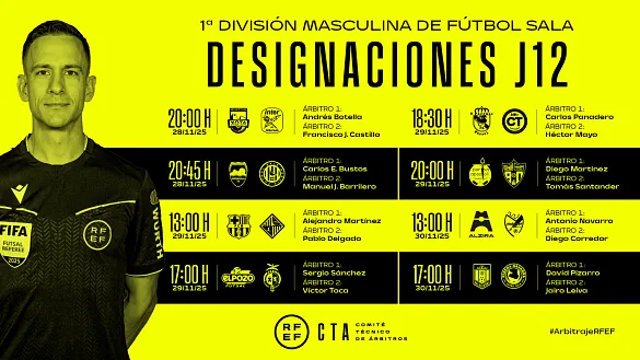 Actualidad Inicio Noticias Todas Categorías Institucional Expand Secondary Navigation Menu Presidencia Juntas directivas Igualdad Responsabilidad Social y Sostenibilidad Integridad Protección de la infancia Área médica Elecciones 2024 Federaciones Territoriales FIFA Patrocinadores rfef.es Museo Labor federativa Expand Secondary Navigation Menu Concursos Circulares Horarios Sanciones Mundial 2030 Competiciones masculinas Expand Secondary Navigation Menu Primera División Segunda División Primera Federación Segunda Federación Tercera Federación Copa del Rey Mapfre Supercopa Copa Federación Playoff de ascenso Competiciones UEFA Competiciones femeninas Expand Secondary Navigation Menu Primera División Femenina Primera Federación Iberdrola Segunda Federación FUTFEM Tercera Federación FUTFEM Copa de la Reina Iberdrola Supercopa Iberdrola Juveniles fútbol 11 Expand Secondary Navigation Menu División de Honor Juvenil Copa de Campeones Copa del Rey juvenil Youth League Selecciones autonómicas Expand Secondary Navigation Menu Copa de las Regiones de UEFA Femenino sub-16 Masculino sub-16 Femenino sub-14 Masculino sub-14 Femenino sub-12 Masculino sub-12 Fútbol sala Expand Secondary Navigation Menu Primera Masculina FS Primera FS Iberdrola Segunda Masculina FS Segunda Femenina FS Segunda B FS División de Honor Juvenil FS Copa de España Supercopa FS Supercopa Femenina FS Copa del Rey FS Copa de la Reina FS Copa de España Juvenil Campeonato de España Juvenil FS Futsal UEFA Champions League Selecciones autonómicas FS Otras competiciones Fútbol playa Expand Secondary Navigation Menu Primera División Playa Masc Segunda División Playa Masc Primera División Playa Fem Segunda División Playa Fem Copa Federación Playa Supercopa Playa Selecciones autonómicas Playa Campeonatos Clubes Base Playa Selecciones Playa adaptado Grassroots Expand Secondary Navigation Menu Playmakers Árbitros Expand Secondary Navigation Menu Designaciones VAR Expand Secondary Navigation Menu Audios VAR Entrenadores Expand Secondary Navigation Menu Premios Técnicos por el mundo Cursos Formación Expand Secondary Navigation Menu Formación online Formación presencial Selección Absoluta Selecciones Masculinas Expand Secondary Navigation Menu Sub-21 Sub-20 Sub-19 Sub-18 Sub-17 Sub-16 Sub-15 Sub-14 Selección Absoluta Femenina Selecciones Femeninas Expand Secondary Navigation Menu Sub-23 Sub-20 Femenina Sub-19 Femenina Sub-17 Femenina Sub-18 Femenina Sub-16 Femenina Sub-15 Femenina Sub-14 Femenina Selección Olímpica Expand Secondary Navigation Menu Selección Olímpica femenina Selección Olímpica masculina Selecciones fútbol sala masculinas Expand Secondary Navigation Menu Selección Absoluta fútbol sala Sub-23 fútbol sala Sub-21 fútbol sala Sub-18 fútbol sala Sub-19 fútbol sala Sub-17 fútbol sala Sub-16 fútbol sala Sub-15 fútbol sala Selecciones fútbol sala femeninas Expand Secondary Navigation Menu Selección Femenina fútbol sala Sub-23 Femenina fútbol sala Sub-21 Femenina fútbol sala Sub-19 Femenina fútbol sala Sub-18 Femenina fútbol sala Sub-17 Femenina fútbol sala Sub-15 Femenina fútbol sala Selecciones de fútbol playa Expand Secondary Navigation Menu Absoluta Masculina Playa Absoluta Femenina Playa Sub-21 Masculina Playa E-Sports Expand Secondary Navigation Menu e-Copa RFEF Leyendas Aplicar 57054 Resultados. Primera Federación PREVIA | Carpetazo a noviembre Este fin de semana se disputa la decimocuarta jornada de Primera Federación Versus e-Learning con la que se archiva el mes de noviembre que habrá acogido cinco jornadas 27 Noviembre 2025 Designaciones, Segunda Federación DESIGNACIONES | Definidos los árbitros que dirigirán la decimotercera jornada de la temporada 2025/26 Los 90 equipos de Segunda Federación jugarán entre el sábado 29 y el domingo 30 de noviembre 27 Noviembre 2025 Primera Federación, Designaciones DESIGNACIONES | Definidos los árbitros que dirigirán la decimocuarta jornada de la temporada 2025/26 La decimocuarta jornada se disputará entre el viernes 28, el sábado 29 y el domingo 30 de noviembre 27 Noviembre 2025 Primera Federación Partidos dignos de playoffs Los enfrentamientos CE Europa-CE Sabadell y Racing de Ferrol-AD Mérida, partidazos de la jornada 14. 27 Noviembre 2025 Copa de las Regiones de UEFA La UEFA Regions' Cup 2025 toma posiciones La Primera Fase de la decimocuarta edición del torneo se disputará entre el 28 y el 30 de noviembre y se podrá ver en directo a través de RFEF.es 27 Noviembre 2025 Segunda Federación PREVIA | Romper mitos La Segunda Federación afronta su decimotercera jornada con el objetivo común de los 90 equipos de vencer y demostrar que el 13 no es sinónimo de mala suerte. 27 Noviembre 2025 Segunda Femenina FS Entrerríos Automatización - CD La Concordia y CDE Leganés - Majadahonda FSF, en rfef.es Los partidos se disputarán el sábado 29 y el domingo 30 de noviembre 27 Noviembre 2025 Segunda Masculina FS Unión África Ceutí - Melistar FS, duelo de necesitados en rfef.es El partido se disputará el sábado 29 a las 19:00 horas (rfef.es y YouTube RFEF) 27 Noviembre 2025 Primera Masculina FS, Designaciones Designaciones | Estos son los árbitros de la jornada 12 en Primera División de fútbol sala Los ocho encuentros se disputarán los días 28, 29 y 30 de noviembre 27 Noviembre 2025 Segunda Femenina FS Los números de una Segunda División de récord Cerca de alcanzar la cifra de 1500 goles anotados por los 48 equipos de los tres grupos 27 Noviembre 2025 Video en el interior Galería de imágenes en el interior Selección Absoluta Femenina Edna Imade: su familia como motor Su historia personal la impulsa cada día mientras ve su sueño hacerse realidad 26 Noviembre 2025 Ver más Ver más