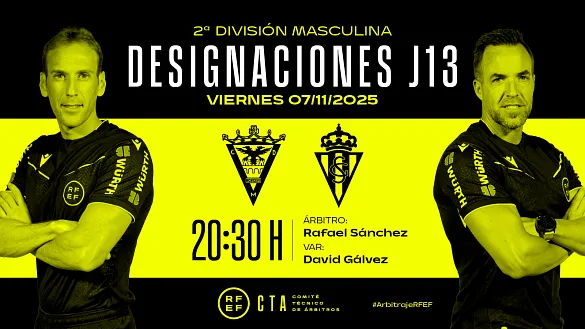 Actualidad Inicio Noticias Todas Categorías Institucional Expand Secondary Navigation Menu Presidencia Juntas directivas Igualdad Responsabilidad Social y Sostenibilidad Integridad Protección de la infancia Área médica Elecciones 2024 Federaciones Territoriales FIFA Patrocinadores rfef.es Museo Labor federativa Expand Secondary Navigation Menu Concursos Circulares Horarios Sanciones Mundial 2030 Competiciones masculinas Expand Secondary Navigation Menu Primera División Segunda División Primera Federación Segunda Federación Tercera Federación Copa del Rey Mapfre Supercopa Copa Federación Playoff de ascenso Competiciones UEFA Competiciones femeninas Expand Secondary Navigation Menu Primera División Femenina Primera Federación Iberdrola Segunda Federación FUTFEM Tercera Federación FUTFEM Copa de la Reina Iberdrola Supercopa Iberdrola Juveniles fútbol 11 Expand Secondary Navigation Menu División de Honor Juvenil Copa de Campeones Copa del Rey juvenil Youth League Selecciones autonómicas Expand Secondary Navigation Menu Copa de las Regiones de UEFA Femenino sub-16 Masculino sub-16 Femenino sub-14 Masculino sub-14 Femenino sub-12 Masculino sub-12 Fútbol sala Expand Secondary Navigation Menu Primera Masculina FS Primera FS Iberdrola Segunda Masculina FS Segunda Femenina FS Segunda B FS División de Honor Juvenil FS Copa de España Supercopa FS Supercopa Femenina FS Copa del Rey FS Copa de la Reina FS Copa de España Juvenil Campeonato de España Juvenil FS Futsal UEFA Champions League Selecciones autonómicas FS Otras competiciones Fútbol playa Expand Secondary Navigation Menu Primera División Playa Masc Segunda División Playa Masc Primera División Playa Fem Segunda División Playa Fem Copa Federación Playa Supercopa Playa Selecciones autonómicas Playa Campeonatos Clubes Base Playa Selecciones Playa adaptado Grassroots Expand Secondary Navigation Menu Playmakers Árbitros Expand Secondary Navigation Menu Designaciones VAR Expand Secondary Navigation Menu Audios VAR Entrenadores Expand Secondary Navigation Menu Premios Técnicos por el mundo Cursos Formación Expand Secondary Navigation Menu Formación online Formación presencial Selección Absoluta Selecciones Masculinas Expand Secondary Navigation Menu Sub-21 Sub-20 Sub-19 Sub-18 Sub-17 Sub-16 Sub-15 Sub-14 Selección Absoluta Femenina Selecciones Femeninas Expand Secondary Navigation Menu Sub-23 Sub-20 Femenina Sub-19 Femenina Sub-17 Femenina Sub-18 Femenina Sub-16 Femenina Sub-15 Femenina Sub-14 Femenina Selección Olímpica Expand Secondary Navigation Menu Selección Olímpica femenina Selección Olímpica masculina Selecciones fútbol sala masculinas Expand Secondary Navigation Menu Selección Absoluta fútbol sala Sub-23 fútbol sala Sub-21 fútbol sala Sub-18 fútbol sala Sub-19 fútbol sala Sub-17 fútbol sala Sub-16 fútbol sala Sub-15 fútbol sala Selecciones fútbol sala femeninas Expand Secondary Navigation Menu Selección Femenina fútbol sala Sub-23 Femenina fútbol sala Sub-21 Femenina fútbol sala Sub-19 Femenina fútbol sala Sub-18 Femenina fútbol sala Sub-17 Femenina fútbol sala Sub-15 Femenina fútbol sala Selecciones de fútbol playa Expand Secondary Navigation Menu Absoluta Masculina Playa Absoluta Femenina Playa Sub-21 Masculina Playa E-Sports Expand Secondary Navigation Menu e-Copa RFEF Leyendas Aplicar 57079 Resultados. Galería de imágenes en el interior Otras competiciones Todo preparado para la final de la Copa Intercontinental Illes Balears Palma Futsal y Club Atlético Peñarol miden fuerzas este viernes 7 a las 21:00 horas 06 Noviembre 2025 Futsal UEFA Champions League Jimbee Cartagena y Palma Futsal ya conocen a sus rivales de octavos de final de la UEFA Futsal Champions League Los encuentros de ida se disputarán el 24 de noviembre y la vuelta el 5 de diciembre 06 Noviembre 2025 Segunda Femenina FS El grupo primero de Segunda División tiene aroma a Primera Hasta ocho equipos cuentan en sus filas con jugadoras con pasado en la máxima categoría 06 Noviembre 2025 Primera Federación, Designaciones DESIGNACIONES | Definidos los árbitros que dirigirán la undécima jornada de la temporada 2025/26 La undécima jornada se disputará entre el viernes 7, el sábado 8 y el domingo 9 de noviembre 06 Noviembre 2025 Árbitros Designaciones | Estas son las árbitras de la jornada 10 en Primera División femenina DESIGNACIÓN ARBITRAL COMPLETA DE LA JORNADA 10 EN PRIMERA DIVISIÓN FEMENINA 06 Noviembre 2025 Designaciones, VAR, Segunda División Designaciones | Estos son los árbitros para el partido del viernes 7 de noviembre de la jornada 13 en Segunda División DESIGNACIÓN ARBITRAL COMPLETA DEL PARTIDO DEL VIERNES 7 DE NOVIEMBRE DE LA JORNADA 13 EN SEGUNDA DIVISIÓN 06 Noviembre 2025 Galería de imágenes en el interior Institucional Conoce a los ponentes del Congreso ELEVA El evento internacional se celebrará los días 20 y 21 de noviembre en la sede de La Real Federación Española de Fútbol 06 Noviembre 2025 Video en el interior Galería de imágenes en el interior Sub-16 Triunfo muy serio de España (2-0) La Selección, en un gran ejercicio de solidez, supera a Estados Unidos con los tantos de Darek Barriento y Álvaro Fernández 06 Noviembre 2025 Designaciones, Primera División, VAR Designaciones | Estos son los árbitros para el partido del viernes 7 de noviembre de la jornada 12 en Primera División DESIGNACIÓN ARBITRAL COMPLETA DEL PARTIDO DEL VIERNES 12 DE NOVIEMBRE DE LA JORNADA 12 EN PRIMERA DIVISIÓN 06 Noviembre 2025 Primera Federación Duelos de altura en la jornada 11 de competición Barakaldo CF - SD Ponferradina y CD Teruel - FC Cartagena son los encuentros destacados 06 Noviembre 2025 Designaciones, Primera Federación Iberdrola Designaciones | Estas son las árbitras para la jornada 9 de Primera Federación femenina DESIGNACIÓN ARBITRAL COMPLETA DE LA JORNADA 9 DE PRIMERA FEDERACIÓN FEMENINA 06 Noviembre 2025 Ver más Ver más