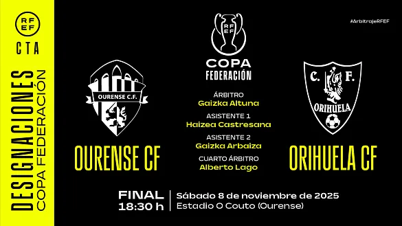 Actualidad Inicio Noticias Todas Categorías Institucional Expand Secondary Navigation Menu Presidencia Juntas directivas Igualdad Responsabilidad Social y Sostenibilidad Integridad Protección de la infancia Área médica Elecciones 2024 Federaciones Territoriales FIFA Patrocinadores rfef.es Museo Labor federativa Expand Secondary Navigation Menu Concursos Circulares Horarios Sanciones Mundial 2030 Competiciones masculinas Expand Secondary Navigation Menu Primera División Segunda División Primera Federación Segunda Federación Tercera Federación Copa del Rey Mapfre Supercopa Copa Federación Playoff de ascenso Competiciones UEFA Competiciones femeninas Expand Secondary Navigation Menu Primera División Femenina Primera Federación Iberdrola Segunda Federación FUTFEM Tercera Federación FUTFEM Copa de la Reina Iberdrola Supercopa Iberdrola Juveniles fútbol 11 Expand Secondary Navigation Menu División de Honor Juvenil Copa de Campeones Copa del Rey juvenil Youth League Selecciones autonómicas Expand Secondary Navigation Menu Copa de las Regiones de UEFA Femenino sub-16 Masculino sub-16 Femenino sub-14 Masculino sub-14 Femenino sub-12 Masculino sub-12 Fútbol sala Expand Secondary Navigation Menu Primera Masculina FS Primera FS Iberdrola Segunda Masculina FS Segunda Femenina FS Segunda B FS División de Honor Juvenil FS Copa de España Supercopa FS Supercopa Femenina FS Copa del Rey FS Copa de la Reina FS Copa de España Juvenil Campeonato de España Juvenil FS Futsal UEFA Champions League Selecciones autonómicas FS Otras competiciones Fútbol playa Expand Secondary Navigation Menu Primera División Playa Masc Segunda División Playa Masc Primera División Playa Fem Segunda División Playa Fem Copa Federación Playa Supercopa Playa Selecciones autonómicas Playa Campeonatos Clubes Base Playa Selecciones Playa adaptado Grassroots Expand Secondary Navigation Menu Playmakers Árbitros Expand Secondary Navigation Menu Designaciones VAR Expand Secondary Navigation Menu Audios VAR Entrenadores Expand Secondary Navigation Menu Premios Técnicos por el mundo Cursos Formación Expand Secondary Navigation Menu Formación online Formación presencial Selección Absoluta Selecciones Masculinas Expand Secondary Navigation Menu Sub-21 Sub-20 Sub-19 Sub-18 Sub-17 Sub-16 Sub-15 Sub-14 Selección Absoluta Femenina Selecciones Femeninas Expand Secondary Navigation Menu Sub-23 Sub-20 Femenina Sub-19 Femenina Sub-17 Femenina Sub-18 Femenina Sub-16 Femenina Sub-15 Femenina Sub-14 Femenina Selección Olímpica Expand Secondary Navigation Menu Selección Olímpica femenina Selección Olímpica masculina Selecciones fútbol sala masculinas Expand Secondary Navigation Menu Selección Absoluta fútbol sala Sub-23 fútbol sala Sub-21 fútbol sala Sub-18 fútbol sala Sub-19 fútbol sala Sub-17 fútbol sala Sub-16 fútbol sala Sub-15 fútbol sala Selecciones fútbol sala femeninas Expand Secondary Navigation Menu Selección Femenina fútbol sala Sub-23 Femenina fútbol sala Sub-21 Femenina fútbol sala Sub-19 Femenina fútbol sala Sub-18 Femenina fútbol sala Sub-17 Femenina fútbol sala Sub-15 Femenina fútbol sala Selecciones de fútbol playa Expand Secondary Navigation Menu Absoluta Masculina Playa Absoluta Femenina Playa Sub-21 Masculina Playa E-Sports Expand Secondary Navigation Menu e-Copa RFEF Leyendas Aplicar 57079 Resultados. Primera Masculina FS, Designaciones DESIGNACIONES | Estos son los árbitros de la jornada 9 en Primera División de fútbol sala Los encuentros se disputarán entre el viernes 7 y el sábado 8 de noviembre 05 Noviembre 2025 Galería de imágenes en el interior Institucional, Labor federativa La RFEF y la Asociación del Fútbol Argentino intercambian conocimientos en Las Rozas La disciplina deportiva y los asuntos jurídicos han protagonizado la reunión de trabajo celebrada este miércoles 05 Noviembre 2025 Primera Federación El resurgir pimentonero El Real Murcia volvió a la senda del triunfo para sumar 4 de los últimos 6 puntos en juego. 05 Noviembre 2025 Primera FS Iberdrola Patricia, el gol con nombre propio en Primera FS Iberdrola La yeclana es la máxima goleadora de la máxima categoría con 10 goles 05 Noviembre 2025 Responsabilidad Social y Sostenibilidad La RFEF y la FESBAL unen fuerzas para impulsar la Gran Recogida 2025 Esta iniciativa solidaria que lucha contra la pobreza alimentaria tendrá lugar los próximos 7, 8 y 9 de noviembre en los principales supermercados del país. 05 Noviembre 2025 Video en el interior Galería de imágenes en el interior Institucional, Juntas directivas Fútbol y diplomacia se unen a dos semanas del España-Turquía Rafael Louzán ha trasladado en la residencia de la embajadora turca en Madrid sus mejores deseos de cara al encuentro clasificatorio entre ambos países del próximo 18 de noviembre en Sevilla: "Estoy seguro de que ambas selecciones estaremos en el próximo Mundial" 05 Noviembre 2025 Designaciones, Copa Federación Designaciones | Estos son los árbitros para la final de la Copa Federación DESIGNACIÓN ARBITRAL COMPLETA DE LA FINAL DE LA COPA FEDERACIÓN 05 Noviembre 2025 Primera Masculina FS Marcel: "Estamos construyendo un equipo ganador" El jugador de ElPozo Murcia Costa Cálida está firmando un gran inicio de competición 05 Noviembre 2025 Video en el interior Primera Federación #ElFútbolDePrimera, programa 10 · temporada 4 Invitados: Víctor Moreno (Villarreal CF B), Guaya (Marino de Luanco), Hugo Sanz (Ourense CF) y Ángel Sánchez (Orihuela CF) 04 Noviembre 2025 Galería de imágenes en el interior Selección Femenina fútbol sala Las internacionales comparten experiencias con el proyecto ‘Women in Futsal’ Peque, Irene Samper, María Sanz y Dany participaron en una inspiradora charla con mujeres del programa impulsado por la Federación Navarra y cofinanciado por la Unión Europea 04 Noviembre 2025 Video en el interior Árbitros, Primera División, Segunda División Tiempo de Revisión - Temporada 2025/2