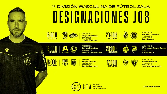 Actualidad Inicio Noticias Todas Categorías Institucional Expand Secondary Navigation Menu Presidencia Juntas directivas Igualdad Responsabilidad Social y Sostenibilidad Integridad Protección de la infancia Área médica Elecciones 2024 Federaciones Territoriales FIFA Patrocinadores rfef.es Museo Labor federativa Expand Secondary Navigation Menu Concursos Circulares Horarios Sanciones Mundial 2030 Competiciones masculinas Expand Secondary Navigation Menu Primera División Segunda División Primera Federación Segunda Federación Tercera Federación Copa del Rey Mapfre Supercopa Copa Federación Playoff de ascenso Competiciones UEFA Competiciones femeninas Expand Secondary Navigation Menu Primera División Femenina Primera Federación Iberdrola Segunda Federación FUTFEM Tercera Federación FUTFEM Copa de la Reina Iberdrola Supercopa Iberdrola Juveniles fútbol 11 Expand Secondary Navigation Menu División de Honor Juvenil Copa de Campeones Copa del Rey juvenil Youth League Selecciones autonómicas Expand Secondary Navigation Menu Copa de las Regiones de UEFA Femenino sub-16 Masculino sub-16 Femenino sub-14 Masculino sub-14 Femenino sub-12 Masculino sub-12 Fútbol sala Expand Secondary Navigation Menu Primera Masculina FS Primera FS Iberdrola Segunda Masculina FS Segunda Femenina FS Segunda B FS División de Honor Juvenil FS Copa de España Supercopa FS Supercopa Femenina FS Copa del Rey FS Copa de la Reina FS Copa de España Juvenil Campeonato de España Juvenil FS Futsal UEFA Champions League Selecciones autonómicas FS Otras competiciones Fútbol playa Expand Secondary Navigation Menu Primera División Playa Masc Segunda División Playa Masc Primera División Playa Fem Segunda División Playa Fem Copa Federación Playa Supercopa Playa Selecciones autonómicas Playa Campeonatos Clubes Base Playa Selecciones Playa adaptado Grassroots Expand Secondary Navigation Menu Playmakers Árbitros Expand Secondary Navigation Menu Designaciones VAR Expand Secondary Navigation Menu Audios VAR Entrenadores Expand Secondary Navigation Menu Premios Técnicos por el mundo Cursos Formación Expand Secondary Navigation Menu Formación online Formación presencial Selección Absoluta Selecciones Masculinas Expand Secondary Navigation Menu Sub-21 Sub-20 Sub-19 Sub-18 Sub-17 Sub-16 Sub-15 Sub-14 Selección Absoluta Femenina Selecciones Femeninas Expand Secondary Navigation Menu Sub-23 Sub-20 Femenina Sub-19 Femenina Sub-17 Femenina Sub-18 Femenina Sub-16 Femenina Sub-15 Femenina Sub-14 Femenina Selección Olímpica Expand Secondary Navigation Menu Selección Olímpica femenina Selección Olímpica masculina Selecciones fútbol sala masculinas Expand Secondary Navigation Menu Selección Absoluta fútbol sala Sub-23 fútbol sala Sub-21 fútbol sala Sub-18 fútbol sala Sub-19 fútbol sala Sub-17 fútbol sala Sub-16 fútbol sala Sub-15 fútbol sala Selecciones fútbol sala femeninas Expand Secondary Navigation Menu Selección Femenina fútbol sala Sub-23 Femenina fútbol sala Sub-21 Femenina fútbol sala Sub-19 Femenina fútbol sala Sub-18 Femenina fútbol sala Sub-17 Femenina fútbol sala Sub-15 Femenina fútbol sala Selecciones de fútbol playa Expand Secondary Navigation Menu Absoluta Masculina Playa Absoluta Femenina Playa Sub-21 Masculina Playa E-Sports Expand Secondary Navigation Menu e-Copa RFEF Leyendas Aplicar 57138 Resultados. Segunda División, Árbitros, VAR Designaciones | Estos son los árbitros para el partido del viernes 31 de octubre de la jornada 12 en Segunda División DESIGNACIÓN ARBITRAL COMPLETA DEL PARTIDO DEL VIERNES 31 DE OCTUBRE DE LA JORNADA 12 EN SEGUNDA DIVISIÓN 30 Octubre 2025 Designaciones, VAR, Primera División Designaciones | Estos son los árbitros para el partido del viernes 31 de octubre de la jornada 11 en Primera División DESIGNACIÓN ARBITRAL COMPLETA DEL PARTIDO DEL VIERNES 31 DE OCTUBRE DE LA JORNADA 11 EN PRIMERA DIVISIÓN 30 Octubre 2025 Primera Federación Por las nubes La jornada 10 de Primera Federación Versus e-Learning llega con dos duelos en la parte alta. 30 Octubre 2025 Galería de imágenes en el interior Copa del Rey FS, Segunda Masculina FS Definidos los enfrentamientos de la cuarta eliminatoria de la Copa de S.M. el Rey Los catorce partidos se disputarán entre los días 18 y 19 de noviembre 30 Octubre 2025 Video en el interior Galería de imágenes en el interior Sub-15 España repite goleada (4-0) Los internacionales de Hernán Pérez vuelven a imponerse a Irlanda con idéntico resultado y finalizan la concentración con muy buenas sensaciones 30 Octubre 2025 Galería de imágenes en el interior Segunda Masculina FS Duelos de alto nivel en los televisados de noviembre de Segunda División masculina Cinco encuentros de la categoría de plata podrán verse en los canales oficiales de la RFEF 30 Octubre 2025 Galería de imágenes en el interior Primera Masculina FS Teledeporte emitirá en noviembre cinco partidos de Primera División El Barça - Illes Balears Palma Futsal, entre los duelos destacados 30 Octubre 2025 Primera Masculina FS, Designaciones DESIGNACIONES | Estos son los árbitros de la jornada 8 en Primera División de fútbol sala Los encuentros se disputarán los días 1 y 2 de noviembre 30 Octubre 2025 Segunda Femenina FS Noviembre llega con ocho encuentros televisados de Segunda División femenina en rfef.es Los mejores partidos de la categoría de plata en los canales oficiales de la RFEF 30 Octubre 2025 Video en el interior Copa del Rey Mapfre RESÚMENES | Otra noche copera para el recuerdo Por los goles, 79 en total. Por la emoción. Por las sorpresas. Por el espectáculo visto en las gradas. La de este miércoles ha sido otra noche mágica en la Copa del Rey MAPFRE.A las 18:00 horas, UD... 30 Octubre 2025 Galería de imágenes en el interior Copa del Rey FS, Segunda Masculina FS, Segunda B FS Tercera eliminatoria repleta de goles y emoción Ya se conocen los clasificados para la cuarta eliminatoria de la Copa del Rey 29 Octubre 2025 V