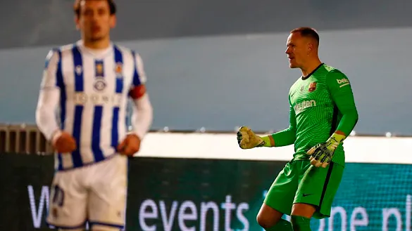 El choque entre FC Barcelona y Real Sociedad solo pudo decantarse desde los once metros. Ter Stegen, con dos paradas, y Riqui Puig, autor del último disparo, se erigieron como los grandes protagonistas de una tanda de penaltis épica