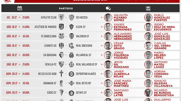 Actualidad Inicio Noticias Todas Categorías Institucional Expand Secondary Navigation Menu Presidencia Juntas directivas Igualdad Responsabilidad Social y Sostenibilidad Integridad Protección de la infancia Área médica Elecciones 2024 Federaciones Territoriales FIFA Patrocinadores rfef.es Museo Labor federativa Expand Secondary Navigation Menu Concursos Circulares Horarios Sanciones Mundial 2030 Competiciones masculinas Expand Secondary Navigation Menu Primera División Segunda División Primera Federación Segunda Federación Tercera Federación Copa del Rey Mapfre Supercopa Copa Federación Playoff de ascenso Competiciones UEFA Competiciones femeninas Expand Secondary Navigation Menu Primera División Femenina Primera Federación Iberdrola Segunda Federación FUTFEM Tercera Federación FUTFEM Copa de la Reina Iberdrola Supercopa Iberdrola Juveniles fútbol 11 Expand Secondary Navigation Menu División de Honor Juvenil Copa de Campeones Copa del Rey juvenil Youth League Selecciones autonómicas Expand Secondary Navigation Menu Copa de las Regiones de UEFA Femenino sub-16 Masculino sub-16 Femenino sub-14 Masculino sub-14 Femenino sub-12 Masculino sub-12 Fútbol sala Expand Secondary Navigation Menu Primera Masculina FS Primera FS Iberdrola Segunda Masculina FS Segunda Femenina FS Segunda B FS División de Honor Juvenil FS Copa de España Supercopa FS Supercopa Femenina FS Copa del Rey FS Copa de la Reina FS Copa de España Juvenil Campeonato de España Juvenil FS Futsal UEFA Champions League Selecciones autonómicas FS Otras competiciones Fútbol playa Expand Secondary Navigation Menu Primera División Playa Masc Segunda División Playa Masc Primera División Playa Fem Segunda División Playa Fem Copa Federación Playa Supercopa Playa Selecciones autonómicas Playa Campeonatos Clubes Base Playa Selecciones Playa adaptado Grassroots Expand Secondary Navigation Menu Playmakers Árbitros Expand Secondary Navigation Menu Designaciones VAR Expand Secondary Navigation Menu Audios VAR Entrenadores Expand Secondary Navigation Menu Premios Técnicos por el mundo Cursos Formación Expand Secondary Navigation Menu Formación online Formación presencial Selección Absoluta Selecciones Masculinas Expand Secondary Navigation Menu Sub-21 Sub-20 Sub-19 Sub-18 Sub-17 Sub-16 Sub-15 Sub-14 Selección Absoluta Femenina Selecciones Femeninas Expand Secondary Navigation Menu Sub-23 Sub-20 Femenina Sub-19 Femenina Sub-17 Femenina Sub-18 Femenina Sub-16 Femenina Sub-15 Femenina Sub-14 Femenina Selección Olímpica Expand Secondary Navigation Menu Selección Olímpica femenina Selección Olímpica masculina Selecciones fútbol sala masculinas Expand Secondary Navigation Menu Selección Absoluta fútbol sala Sub-23 fútbol sala Sub-21 fútbol sala Sub-18 fútbol sala Sub-19 fútbol sala Sub-17 fútbol sala Sub-16 fútbol sala Sub-15 fútbol sala Selecciones fútbol sala femeninas Expand Secondary Navigation Menu Selección Femenina fútbol sala Sub-23 Femenina fútbol sala Sub-21 Femenina fútbol sala Sub-19 Femenina fútbol sala Sub-18 Femenina fútbol sala Sub-17 Femenina fútbol sala Sub-15 Femenina fútbol sala Selecciones de fútbol playa Expand Secondary Navigation Menu Absoluta Masculina Playa Absoluta Femenina Playa Sub-21 Masculina Playa E-Sports Expand Secondary Navigation Menu e-Copa RFEF Leyendas Aplicar 57166 Resultados. Competiciones masculinas, Supercopa OFICIAL | Este es el SORTEO de emparejamientos de la Supercopa de España Los encuentros se disputarán en Málaga, Córdoba y Sevilla 17 Diciembre 2020 Competiciones masculinas, Supercopa, Supercopa Iberdrola La Asamblea de la RFEF aprueba la celebración de la Supercopa de España en Andalucía Por primera vez en la historia, las Supercopas masculina y femenina se jugarán juntas en fecha y lugares. La Supercopa masculina se jugará en Málaga, Córdoba y Sevilla mientras que la femenina se... 17 Diciembre 2020 Primera División Femenina, Árbitros, Designaciones DESIGNACIONES | Estas son las árbitras de la jornada 12 en Primera Iberdrola DESIGNACIONES ARBITRALES COMPLETAS DE LA JORNADA 12 EN PRIMERA IBERDROLA 17 Diciembre 2020 Árbitros, Designaciones DESIGNACIONES | Estos son los árbitros de la jornada 14 en Primera División y jornada 19 en Segunda División DESIGNACIONES ARBITRALES COMPLETAS DE LA JORNADA 14 EN PRIMERA DIVISIÓN DESIGNACIONES ARBITRALES COMPLETAS DE LA JORNADA 19 EN SEGUNDA DIVISIÓN 17 Diciembre 2020 Competiciones masculinas, Supercopa Iberdrola, Competiciones femeninas Así quedó el SORTEO de la Supercopa de España femenina Se disputará en Almería los días, 12, 13 y 16 de enero de 2021. Todos los encuentros se disputarán en el estadio Juegos del Mediterráneo de la localidad andaluza 17 Diciembre 2020 Sanciones SANCIONES | Acuerdos y resoluciones de la 13ª jornada en Primera División y de la 18ª en Segunda El órgano disciplinario de la RFEF se pronuncia sobre los partidos jugados entre el 11 y el 14 de diciembre 17 Diciembre 2020 Competiciones masculinas, Competiciones femeninas, Primera División Femenina Aquí tienes los MARCADORES de los partidos aplazados en #PrimeraIberdrola Triunfos para Rayo Vallecano y Sevilla FC en los partidos disputados este miércoles, 16 de diciembre, correspondientes a las jornadas 2 y 5 de Primera Iberdrola 16 Diciembre 2020 Competiciones masculinas, Competiciones femeninas, Tercera Federación FUTFEM HORARIOS de la última jornada del año en Primera Nacional Femenina Los partidos se jugarán el sábado 19 y el domingo 20 de diciembre 16 Diciembre 2020 Selección Absoluta Sanitas entregó las tarjetas digitales a los jugadores de la Selección Española de Fútbol La compañía especialista en salud continuará acompañando a la Selección hasta la celebración de la próxima competición europea de selecciones nacionales 16 Diciembre 2020 Copa del Rey FS RESULTADOS | Así han sido los octavos de final de la Copa de S. M. el Rey Tras los partidos del martes y del miércoles,