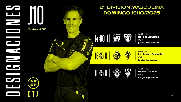 Actualidad Inicio Noticias Todas Categorías Institucional Expand Secondary Navigation Menu Presidencia Juntas directivas Igualdad Responsabilidad Social y Sostenibilidad Integridad Protección de la infancia Área médica Elecciones 2024 Federaciones Territoriales FIFA Patrocinadores rfef.es Museo Labor federativa Expand Secondary Navigation Menu Concursos Circulares Horarios Sanciones Mundial 2030 Competiciones masculinas Expand Secondary Navigation Menu Primera División Segunda División Primera Federación Segunda Federación Tercera Federación Copa del Rey Mapfre Supercopa Copa Federación Playoff de ascenso Competiciones UEFA Competiciones femeninas Expand Secondary Navigation Menu Primera División Femenina Primera Federación Iberdrola Segunda Federación FUTFEM Tercera Federación FUTFEM Copa de la Reina Iberdrola Supercopa Iberdrola Juveniles fútbol 11 Expand Secondary Navigation Menu División de Honor Juvenil Copa de Campeones Copa del Rey juvenil Youth League Selecciones autonómicas Expand Secondary Navigation Menu Copa de las Regiones de UEFA Femenino sub-16 Masculino sub-16 Femenino sub-14 Masculino sub-14 Femenino sub-12 Masculino sub-12 Fútbol sala Expand Secondary Navigation Menu Primera Masculina FS Primera FS Iberdrola Segunda Masculina FS Segunda Femenina FS Segunda B FS División de Honor Juvenil FS Copa de España Supercopa FS Supercopa Femenina FS Copa del Rey FS Copa de la Reina FS Copa de España Juvenil Campeonato de España Juvenil FS Futsal UEFA Champions League Selecciones autonómicas FS Otras competiciones Fútbol playa Expand Secondary Navigation Menu Primera División Playa Masc Segunda División Playa Masc Primera División Playa Fem Segunda División Playa Fem Copa Federación Playa Supercopa Playa Selecciones autonómicas Playa Campeonatos Clubes Base Playa Selecciones Playa adaptado Grassroots Expand Secondary Navigation Menu Playmakers Árbitros Expand Secondary Navigation Menu Designaciones VAR Expand Secondary Navigation Menu Audios VAR Entrenadores Expand Secondary Navigation Menu Premios Técnicos por el mundo Cursos Formación Expand Secondary Navigation Menu Formación online Formación presencial Selección Absoluta Selecciones Masculinas Expand Secondary Navigation Menu Sub-21 Sub-20 Sub-19 Sub-18 Sub-17 Sub-16 Sub-15 Sub-14 Selección Absoluta Femenina Selecciones Femeninas Expand Secondary Navigation Menu Sub-23 Sub-20 Femenina Sub-19 Femenina Sub-17 Femenina Sub-18 Femenina Sub-16 Femenina Sub-15 Femenina Sub-14 Femenina Selección Olímpica Expand Secondary Navigation Menu Selección Olímpica femenina Selección Olímpica masculina Selecciones fútbol sala masculinas Expand Secondary Navigation Menu Selección Absoluta fútbol sala Sub-23 fútbol sala Sub-21 fútbol sala Sub-18 fútbol sala Sub-19 fútbol sala Sub-17 fútbol sala Sub-16 fútbol sala Sub-15 fútbol sala Selecciones fútbol sala femeninas Expand Secondary Navigation Menu Selección Femenina fútbol sala Sub-23 Femenina fútbol sala Sub-21 Femenina fútbol sala Sub-19 Femenina fútbol sala Sub-18 Femenina fútbol sala Sub-17 Femenina fútbol sala Sub-15 Femenina fútbol sala Selecciones de fútbol playa Expand Secondary Navigation Menu Absoluta Masculina Playa Absoluta Femenina Playa Sub-21 Masculina Playa E-Sports Expand Secondary Navigation Menu e-Copa RFEF Leyendas Aplicar 57043 Resultados. Video en el interior Sub-17 Femenina PREVIA | ¡Arranca una aventura mundial! España debutará ante Colombia a partir de las 21:00 horas en la Academia de Fútbol Mohammed VI (Teledeporte y FIFA+) 19 Octubre 2025 Primera FS Iberdrola Jornada de pasión y movimientos en la Primera FS Iberdrola Empate sobre la bocina, primera victoria liguera y duelos resueltos en los instantes finales 19 Octubre 2025 Video en el interior Audios VAR, Segunda División Audios de las revisiones VAR de la 10ª jornada en Segunda División de la temporada 2025/26 Estos audios se publicarán durante cada jornada de Primera y Segunda División de la temporada 2025/2026 18 Octubre 2025 Video en el interior Audios VAR, Primera División Audios de las revisiones VAR de la 9ª jornada en Primera División de la temporada 2025/26 Estos audios se publicarán durante cada jornada de Primera y Segunda División de la temporada 2025/2026 18 Octubre 2025 Galería de imágenes en el interior Primera Federación Iberdrola Baile de posiciones a ritmo babazorro El Deportivo Alavés se mantiene como líder invicto en una clasificación invadida por la igualdad y en la que la SE AEM logró su primera victoria de la temporada 18 Octubre 2025 Selección Absoluta fútbol sala PREVIA | A por el primer triunfo en Marruecos El encuentro podrá seguirse a través de rfef.es (20:00 horas) 18 Octubre 2025 Designaciones, VAR, Segunda División Designaciones | Estos son los árbitros para los partidos del domingo 19 de octubre de la jornada 10 en Segunda División DESIGNACIÓN ARBITRAL COMPLETA | SEGUNDA DIVISIÓN | JORNADA 10 | DOMINGO 19 DE OCTUBRE 18 Octubre 2025 Designaciones, Primera División, VAR Designaciones | Estos son los árbitros designados para los partidos del domingo 19 de octubre de la jornada 9 en Primera División DESIGNACIÓN COMPLETA | PRIMERA DIVISIÓN | JORNADA 9 | DOMINGO 19 DE OCTUBRE 18 Octubre 2025 Galería de imágenes en el interior Selección Absoluta fútbol sala Preparados para el doble duelo ante Marruecos España se mide al equipo marroquí el 19 y el 21 de octubre 18 Octubre 2025 Video en el interior Primera FS Iberdrola El Melilla CD Torreblanca, líder una jornada más El Castro Bloques Cando asalta la tercera plaza y el CD Burela se anota su primera victoria 18 Octubre 2025 Galería de imágenes en el interior Sub-17 Femenina Últimos retoques antes del debut España realiza su último entrenamiento antes de jugar contra Colombia 18 Octubre 2025 Ver más Ver más