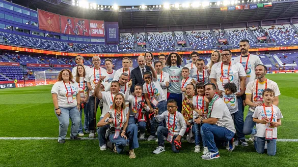 El presidente Rafael Louzán ha compartido los minutos previos al encuentro con un grupo de personas con trastorno del espectro autismo, quienes han protagonizado los prolegómenos del duelo frente a Bulgaria y luego han podido disfrutar de él desde un lugar especialmente habilitado del estadio José Zorrilla
