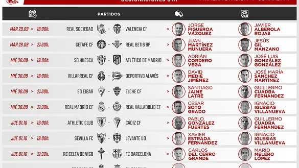 Actualidad Inicio Noticias Todas Categorías Institucional Expand Secondary Navigation Menu Presidencia Juntas directivas Igualdad Responsabilidad Social y Sostenibilidad Integridad Protección de la infancia Área médica Elecciones 2024 Federaciones Territoriales FIFA Patrocinadores rfef.es Museo Labor federativa Expand Secondary Navigation Menu Concursos Circulares Horarios Sanciones Mundial 2030 Competiciones masculinas Expand Secondary Navigation Menu Primera División Segunda División Primera Federación Segunda Federación Tercera Federación Copa del Rey Mapfre Supercopa Copa Federación Playoff de ascenso Competiciones UEFA Competiciones femeninas Expand Secondary Navigation Menu Primera División Femenina Primera Federación Iberdrola Segunda Federación FUTFEM Tercera Federación FUTFEM Copa de la Reina Iberdrola Supercopa Iberdrola Juveniles fútbol 11 Expand Secondary Navigation Menu División de Honor Juvenil Copa de Campeones Copa del Rey juvenil Youth League Selecciones autonómicas Expand Secondary Navigation Menu Copa de las Regiones de UEFA Femenino sub-16 Masculino sub-16 Femenino sub-14 Masculino sub-14 Femenino sub-12 Masculino sub-12 Fútbol sala Expand Secondary Navigation Menu Primera Masculina FS Primera FS Iberdrola Segunda Masculina FS Segunda Femenina FS Segunda B FS División de Honor Juvenil FS Copa de España Supercopa FS Supercopa Femenina FS Copa del Rey FS Copa de la Reina FS Copa de España Juvenil Campeonato de España Juvenil FS Futsal UEFA Champions League Selecciones autonómicas FS Otras competiciones Fútbol playa Expand Secondary Navigation Menu Primera División Playa Masc Segunda División Playa Masc Primera División Playa Fem Segunda División Playa Fem Copa Federación Playa Supercopa Playa Selecciones autonómicas Playa Campeonatos Clubes Base Playa Selecciones Playa adaptado Grassroots Expand Secondary Navigation Menu Playmakers Árbitros Expand Secondary Navigation Menu Designaciones VAR Expand Secondary Navigation Menu Audios VAR Entrenadores Expand Secondary Navigation Menu Premios Técnicos por el mundo Cursos Formación Expand Secondary Navigation Menu Formación online Formación presencial Selección Absoluta Selecciones Masculinas Expand Secondary Navigation Menu Sub-21 Sub-20 Sub-19 Sub-18 Sub-17 Sub-16 Sub-15 Sub-14 Selección Absoluta Femenina Selecciones Femeninas Expand Secondary Navigation Menu Sub-23 Sub-20 Femenina Sub-19 Femenina Sub-17 Femenina Sub-18 Femenina Sub-16 Femenina Sub-15 Femenina Sub-14 Femenina Selección Olímpica Expand Secondary Navigation Menu Selección Olímpica femenina Selección Olímpica masculina Selecciones fútbol sala masculinas Expand Secondary Navigation Menu Selección Absoluta fútbol sala Sub-23 fútbol sala Sub-21 fútbol sala Sub-18 fútbol sala Sub-19 fútbol sala Sub-17 fútbol sala Sub-16 fútbol sala Sub-15 fútbol sala Selecciones fútbol sala femeninas Expand Secondary Navigation Menu Selección Femenina fútbol sala Sub-23 Femenina fútbol sala Sub-21 Femenina fútbol sala Sub-19 Femenina fútbol sala Sub-18 Femenina fútbol sala Sub-17 Femenina fútbol sala Sub-15 Femenina fútbol sala Selecciones de fútbol playa Expand Secondary Navigation Menu Absoluta Masculina Playa Absoluta Femenina Playa Sub-21 Masculina Playa E-Sports Expand Secondary Navigation Menu e-Copa RFEF Leyendas Aplicar 57334 Resultados. Primera Masculina FS Estos son los horarios de la primera jornada de la Primera RFEF Futsal La máxima categoría del fútbol sala masculino arrancará el viernes 2 de octubre con dos encuentros, mientras que el resto se disputarán el sábado 3 de octubre 28 Septiembre 2020 Otras competiciones La Copa de Andalucía de fútbol sala se tiñe de verde y blanco califal Córdoba Patrimonio de la Humanidad se ha impuesto en la tanda de penaltis de la finalísima al Jaén Paraíso Interior 27 Septiembre 2020 Competiciones femeninas, Primera División Femenina El Sevilla FC Femenino ya tiene decididos los dorsales oficiales de la temporada El club hispalense comenzará este mes de octubre la Primera Iberdrola midiéndose al CD Santa Teresa 27 Septiembre 2020 Competiciones femeninas, Primera División Femenina UD Granadilla se impone en su test local al Real Unión de Tenerife Tacuense (4-3) El equipo de la Primera Iberdrola ha sido mejor sobre el terreno de juego de El Rosario 27 Septiembre 2020 Otras competiciones Córdoba Patrimonio se impone en la segunda semifinal de la Copa de Andalucía de fútbol sala El equipo califal se enfrentará este domingo por el título al Jaén Paraíso Interior 27 Septiembre 2020 Árbitros, Designaciones, VAR DESIGNACIONES | Estos son los árbitros de la jornada 4 en Primera División DESIGNACIONES ARBITRALES COMPLETAS DE LA JORNADA 4 EN PRIMERA DIVISIÓN 27 Septiembre 2020 Otras competiciones Movistar Inter FS se lleva el VI Memorial Manuel Saorín - Trofeo Ciudad de Torrejón ante Viña Albali Valdepeñas (7-3) Último encuentro de pretemporada para los vigentes campeones de Primera División de Fútbol Sala 26 Septiembre 2020 Otras competiciones Pescados Rubén Burela revalida el memorial José Huerta-Pablo Cortina (2-7) Las vigentes campeonas de Primera se han impuesto con autoridad en la localidad asturiana de Villaviciosa 26 Septiembre 2020 Institucional Mensajeros de la Paz y la Real Federación Española de Fútbol, unidos por la solidaridad El organismo rector del fútbol en nuestro país ha realizado una nueva donación de ropa a la fundación creada por el padre Ángel 26 Septiembre 2020 Otras competiciones El Jaén Paraíso Interior se convierte en el primer finalista de la Copa de Andalucía Los amarillos se han impuesto en Baena al UMA Antequera por tres goles a uno 26 Septiembre 2020 Competiciones masculinas, Institucional, Circulares La RFEF hace público el Protocolo sanitario que permitirá iniciar las competiciones con la máxima seguridad El Protocolo, validado por el CSD, establece las responsabilidades y funciones de todos los ám