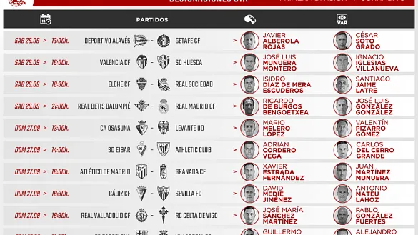 Actualidad Inicio Noticias Todas Categorías Institucional Expand Secondary Navigation Menu Presidencia Juntas directivas Igualdad Responsabilidad Social y Sostenibilidad Integridad Protección de la infancia Área médica Elecciones 2024 Federaciones Territoriales FIFA Patrocinadores rfef.es Museo Labor federativa Expand Secondary Navigation Menu Concursos Circulares Horarios Sanciones Mundial 2030 Competiciones masculinas Expand Secondary Navigation Menu Primera División Segunda División Primera Federación Segunda Federación Tercera Federación Copa del Rey Mapfre Supercopa Copa Federación Playoff de ascenso Competiciones UEFA Competiciones femeninas Expand Secondary Navigation Menu Primera División Femenina Primera Federación Iberdrola Segunda Federación FUTFEM Tercera Federación FUTFEM Copa de la Reina Iberdrola Supercopa Iberdrola Juveniles fútbol 11 Expand Secondary Navigation Menu División de Honor Juvenil Copa de Campeones Copa del Rey juvenil Youth League Selecciones autonómicas Expand Secondary Navigation Menu Copa de las Regiones de UEFA Femenino sub-16 Masculino sub-16 Femenino sub-14 Masculino sub-14 Femenino sub-12 Masculino sub-12 Fútbol sala Expand Secondary Navigation Menu Primera Masculina FS Primera FS Iberdrola Segunda Masculina FS Segunda Femenina FS Segunda B FS División de Honor Juvenil FS Copa de España Supercopa FS Supercopa Femenina FS Copa del Rey FS Copa de la Reina FS Copa de España Juvenil Campeonato de España Juvenil FS Futsal UEFA Champions League Selecciones autonómicas FS Otras competiciones Fútbol playa Expand Secondary Navigation Menu Primera División Playa Masc Segunda División Playa Masc Primera División Playa Fem Segunda División Playa Fem Copa Federación Playa Supercopa Playa Selecciones autonómicas Playa Campeonatos Clubes Base Playa Selecciones Playa adaptado Grassroots Expand Secondary Navigation Menu Playmakers Árbitros Expand Secondary Navigation Menu Designaciones VAR Expand Secondary Navigation Menu Audios VAR Entrenadores Expand Secondary Navigation Menu Premios Técnicos por el mundo Cursos Formación Expand Secondary Navigation Menu Formación online Formación presencial Selección Absoluta Selecciones Masculinas Expand Secondary Navigation Menu Sub-21 Sub-20 Sub-19 Sub-18 Sub-17 Sub-16 Sub-15 Sub-14 Selección Absoluta Femenina Selecciones Femeninas Expand Secondary Navigation Menu Sub-23 Sub-20 Femenina Sub-19 Femenina Sub-17 Femenina Sub-18 Femenina Sub-16 Femenina Sub-15 Femenina Sub-14 Femenina Selección Olímpica Expand Secondary Navigation Menu Selección Olímpica femenina Selección Olímpica masculina Selecciones fútbol sala masculinas Expand Secondary Navigation Menu Selección Absoluta fútbol sala Sub-23 fútbol sala Sub-21 fútbol sala Sub-18 fútbol sala Sub-19 fútbol sala Sub-17 fútbol sala Sub-16 fútbol sala Sub-15 fútbol sala Selecciones fútbol sala femeninas Expand Secondary Navigation Menu Selección Femenina fútbol sala Sub-23 Femenina fútbol sala Sub-21 Femenina fútbol sala Sub-19 Femenina fútbol sala Sub-18 Femenina fútbol sala Sub-17 Femenina fútbol sala Sub-15 Femenina fútbol sala Selecciones de fútbol playa Expand Secondary Navigation Menu Absoluta Masculina Playa Absoluta Femenina Playa Sub-21 Masculina Playa E-Sports Expand Secondary Navigation Menu e-Copa RFEF Leyendas Aplicar 57336 Resultados. Árbitros, Designaciones, VAR DESIGNACIONES | Estos son los árbitros de la Jornada 3 en Primera y Segunda División DESIGNACIONES ARBITRALES COMPLETAS DE LA JORNADA 3 EN PRIMERA DIVISIÓN DESIGNACIONES ARBITRALES COMPLETAS DE LA JORNADA 3 EN SEGUNDA DIVISIÓN 24 Septiembre 2020 rfef.es José María Timón, nuevo director de Gabinete del presidente de la RFEF José María Timón será el nuevo director de Gabinete del presidente de la Real Federación Española de Fútbol (RFEF) en la nueva etapa que comenzó el pasado lunes, tras las elecciones que dieron la... 24 Septiembre 2020 Primera FS Iberdrola Laura Donoso: “Se está haciendo muy duro, pero poco a poco vamos cogiendo el ritmo” La guardameta madrileña destacó el buen ambiente que se respira en el vestuario: “Las chicas son muy majas y nos vamos a echar unas risas este año” 24 Septiembre 2020 Primera FS Iberdrola, Segunda Femenina FS La RFEF destinará 2 millones de euros a los clubes Primera y Segunda División Femenina de Fútbol Sala A partir de esta temporada 2020/2021, los clubes de Primera RFEF Futsal Femenina y Segunda RFEF Futsal Femenina recibirán 500.000 euros. Y, así sucesivamente, durante las campañas 2021/2022, 2022/2023 y 2023/2024 24 Septiembre 2020 Primera FS Iberdrola Marta Pelegrín nueva pieza para el STV Roldán A sus 29 años llega a sumar con su experiencia y con una contrastada madurez deportiva a una plantilla muy joven y con muchas ganas de crecer 24 Septiembre 2020 Galería de imágenes en el interior Competiciones femeninas, Primera División Femenina María Tato, nueva directora de Fútbol Femenino de la RFEF María Tato será la nueva directora de Fútbol Femenino de la RFEF en la nueva etapa de esta institución que dirige el fútbol en España, iniciada tras la elección el pasado lunes del presidente Luis Rubiales para los próximos cuatro años. 24 Septiembre 2020 Segunda Masculina FS, Segunda B FS La JCCM presenta la XVI edición del campeonato territorial de fútbol sala Manzanares FS Quesos El Hidalgo, CD Cobisa FS, Viña Albali FS, AD Bargas FS, Soliss FS Talavera, EMS Sacedón y CD Ciudad de Guadalajara competirán por alzar el título de la Junta de Comunidades de Castilla-La Mancha 23 Septiembre 2020 Sanciones Acuerdos y resoluciones del Comité de Competición en Primera y Segunda Ya están disponibles los acuerdos y resoluciones de la jornada 2 en Primera y Segunda División 23 Septiembre 2020 Primera Masculina FS, Segunda Masculina FS La RFEF presenta a los clubes de fútbol sala el Programa “Avance 24”, con 8 millones de euros para potenciar este deporte Los clu