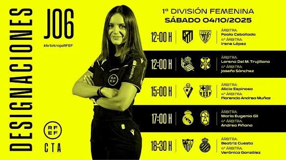 Actualidad Inicio Noticias Todas Categorías Institucional Expand Secondary Navigation Menu Presidencia Juntas directivas Igualdad Responsabilidad Social y Sostenibilidad Integridad Protección de la infancia Área médica Elecciones 2024 Federaciones Territoriales FIFA Patrocinadores rfef.es Museo Labor federativa Expand Secondary Navigation Menu Concursos Circulares Horarios Sanciones Mundial 2030 Competiciones masculinas Expand Secondary Navigation Menu Primera División Segunda División Primera Federación Segunda Federación Tercera Federación Copa del Rey Mapfre Supercopa Copa Federación Playoff de ascenso Competiciones UEFA Competiciones femeninas Expand Secondary Navigation Menu Primera División Femenina Primera Federación Iberdrola Segunda Federación FUTFEM Tercera Federación FUTFEM Copa de la Reina Iberdrola Supercopa Iberdrola Juveniles fútbol 11 Expand Secondary Navigation Menu División de Honor Juvenil Copa de Campeones Copa del Rey juvenil Youth League Selecciones autonómicas Expand Secondary Navigation Menu Copa de las Regiones de UEFA Femenino sub-16 Masculino sub-16 Femenino sub-14 Masculino sub-14 Femenino sub-12 Masculino sub-12 Fútbol sala Expand Secondary Navigation Menu Primera Masculina FS Primera FS Iberdrola Segunda Masculina FS Segunda Femenina FS Segunda B FS División de Honor Juvenil FS Copa de España Supercopa FS Supercopa Femenina FS Copa del Rey FS Copa de la Reina FS Copa de España Juvenil Campeonato de España Juvenil FS Futsal UEFA Champions League Selecciones autonómicas FS Otras competiciones Fútbol playa Expand Secondary Navigation Menu Primera División Playa Masc Segunda División Playa Masc Primera División Playa Fem Segunda División Playa Fem Copa Federación Playa Supercopa Playa Selecciones autonómicas Playa Campeonatos Clubes Base Playa Selecciones Playa adaptado Grassroots Expand Secondary Navigation Menu Playmakers Árbitros Expand Secondary Navigation Menu Designaciones VAR Expand Secondary Navigation Menu Audios VAR Entrenadores Expand Secondary Navigation Menu Premios Técnicos por el mundo Cursos Formación Expand Secondary Navigation Menu Formación online Formación presencial Selección Absoluta Selecciones Masculinas Expand Secondary Navigation Menu Sub-21 Sub-20 Sub-19 Sub-18 Sub-17 Sub-16 Sub-15 Sub-14 Selección Absoluta Femenina Selecciones Femeninas Expand Secondary Navigation Menu Sub-23 Sub-20 Femenina Sub-19 Femenina Sub-17 Femenina Sub-18 Femenina Sub-16 Femenina Sub-15 Femenina Sub-14 Femenina Selección Olímpica Expand Secondary Navigation Menu Selección Olímpica femenina Selección Olímpica masculina Selecciones fútbol sala masculinas Expand Secondary Navigation Menu Selección Absoluta fútbol sala Sub-23 fútbol sala Sub-21 fútbol sala Sub-18 fútbol sala Sub-19 fútbol sala Sub-17 fútbol sala Sub-16 fútbol sala Sub-15 fútbol sala Selecciones fútbol sala femeninas Expand Secondary Navigation Menu Selección Femenina fútbol sala Sub-23 Femenina fútbol sala Sub-21 Femenina fútbol sala Sub-19 Femenina fútbol sala Sub-18 Femenina fútbol sala Sub-17 Femenina fútbol sala Sub-15 Femenina fútbol sala Selecciones de fútbol playa Expand Secondary Navigation Menu Absoluta Masculina Playa Absoluta Femenina Playa Sub-21 Masculina Playa E-Sports Expand Secondary Navigation Menu e-Copa RFEF Leyendas Aplicar 57058 Resultados. Galería de imágenes en el interior Sub-21 Castellón de la Plana se vuelca con el España-Finlandia Este miércoles se ha presentado en el Ayuntamiento de la localidad el partido del próximo 14 de octubre con el objetivo de que Castalia sea una gran fiesta para animar a la Selección de David Gordo 01 Octubre 2025 Primera Federación Un torbellino celeste El Celta Fortuna firma, con 10 puntos en las primeras cinco jornadas, su mejor arranque en Primera Federación Versus e-Learning. 01 Octubre 2025 Video en el interior Primera Masculina FS, Primera FS Iberdrola Los Súper sábados de Fútbol Sala llegan a Teledeporte Desde este sábado 4 de octubre, el fútbol sala contará con un hueco fijo en la parrilla matinal de los sábados con la retransmisión de un partido de Primera FS Iberdrola (11:00 horas) y, seguidamente... 01 Octubre 2025 Designaciones, Primera División Femenina Designaciones | Estas son las árbitras de la jornada 6 en Primera División femenina DESIGNACIÓN ARBITRAL COMPLETA DE LA JORNADA 6 EN PRIMERA DIVISIÓN FEMENINA 01 Octubre 2025 Designaciones, Segunda División, VAR Designaciones | Estos son los árbitros para el partido del viernes 3 de octubre en Segunda División DESIGNACIÓN ARBITRAL COMPLETA DEL PARTIDO DEL VIERNES 3 DE OCTUBRE DE LA OCTAVA JORNADA EN SEGUNDA DIVISIÓN 01 Octubre 2025 Sub-18 Lista de España para disputar el Torneo Cuatro Naciones en Turquía El equipo estará dirigido por David García Cubillo y se enfrentará a Portugal, Turquía y Rumanía del 9 al 14 de octubre 01 Octubre 2025 Designaciones, Primera División, VAR Designaciones | Estos son los árbitros para el partido del viernes 3 de octubre en Primera División DESIGNACIÓN ARBITRAL COMPLETA DEL PARTIDO DEL VIERNES 3 DE OCTUBRE DE LA OCTAVA JORNADA DE PRIMERA DIVISIÓN 01 Octubre 2025 Sub-20 Con la ilusión intacta España busca sumar su primera victoria en el Mundial de Chile ante México (22:00 horas en Teledeporte) 01 Octubre 2025 Galería de imágenes en el interior Sub-20 Todo listo para el segundo desafío El equipo de Paco Gallardo realiza su última sesión antes del importante duelo ante México 01 Octubre 2025 Primera Masculina FS Punto y final al mercado de fichajes 2025/26 en Primera División Altas, bajas y renovaciones, todas ¡AQUÍ! 01 Octubre 2025 Primera FS Iberdrola Finaliza el mercado de fichajes en la Primera FS Iberdrola para la temporada 2025/26 Altas, bajas y renovaciones del mercado estival en la máxima categoría 01 Octubre 2025 Ver más Ver más